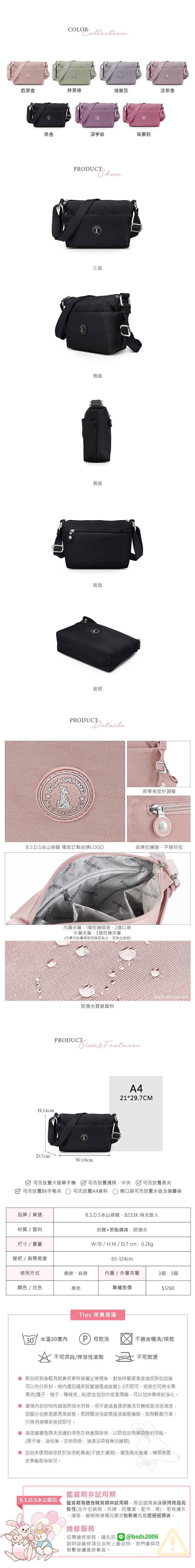 B.S.D.S冰山袋鼠 - 時光旅人 - 知性輕巧收納斜背小包 - 黑色【B233K】