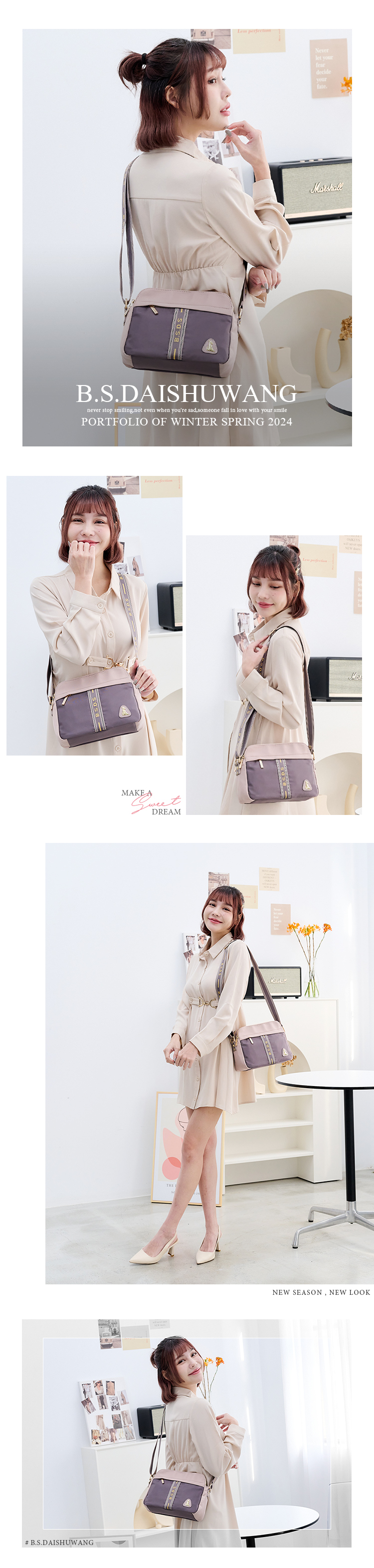 B.S.D.S冰山袋鼠 - 非常莓好 - 織帶拼接多層收納貝殼包 - 藕紫灰【7005-GU】