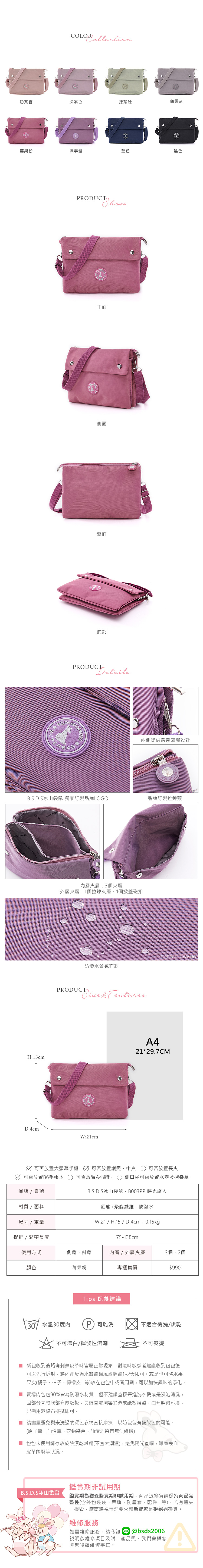 B.S.D.S冰山袋鼠 - 時光旅人 - 知性橫式三層斜背小包 - 莓果粉【B003PP】