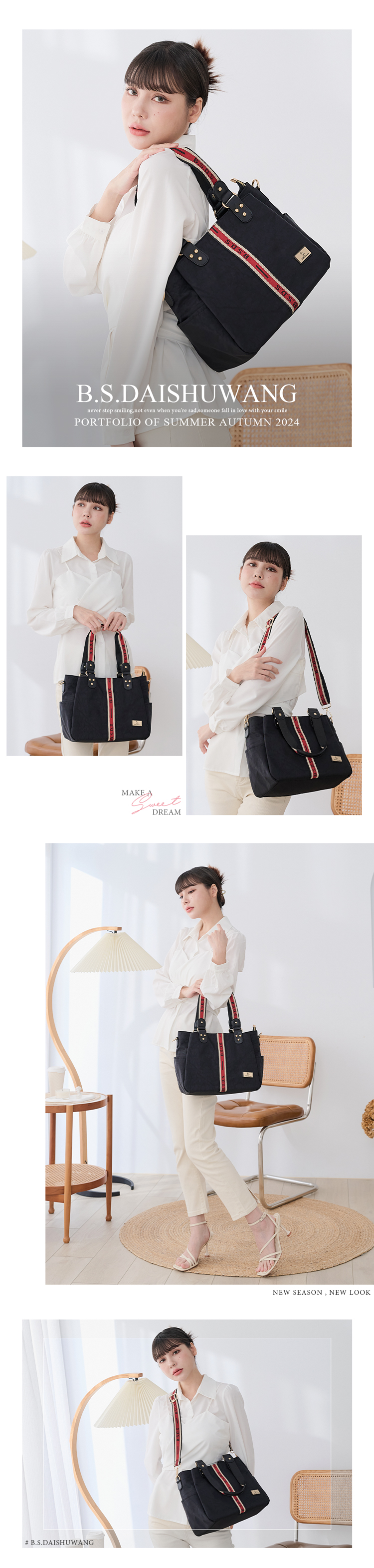B.S.D.S冰山袋鼠 - 非常莓好 - 織帶拼接多層兩用托特包 - 紅磚黑【8010-KR】