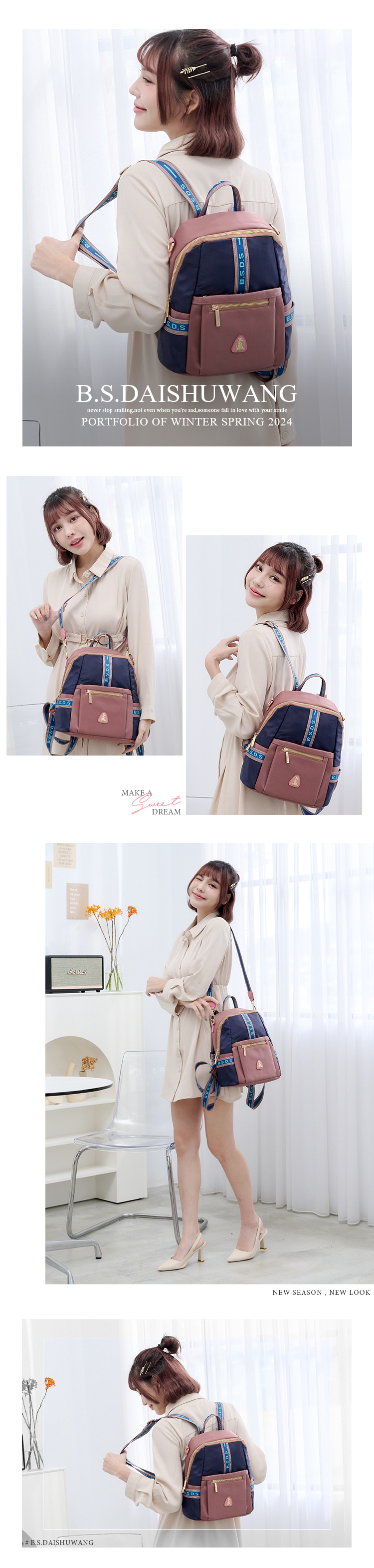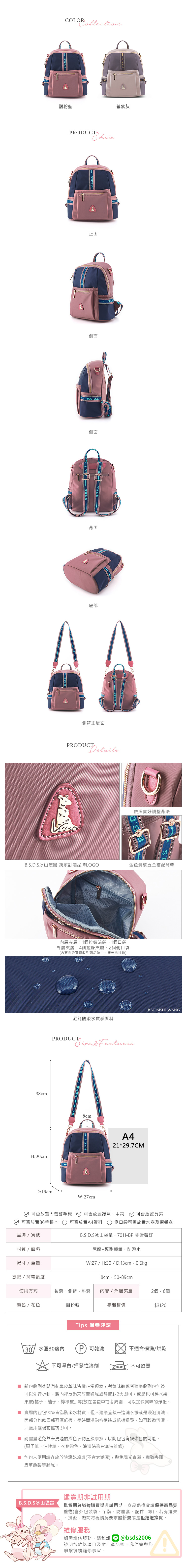 B.S.D.S冰山袋鼠 - 非常莓好 - 織帶拼接多層兩用後背包 - 甜粉藍【7011-BP】