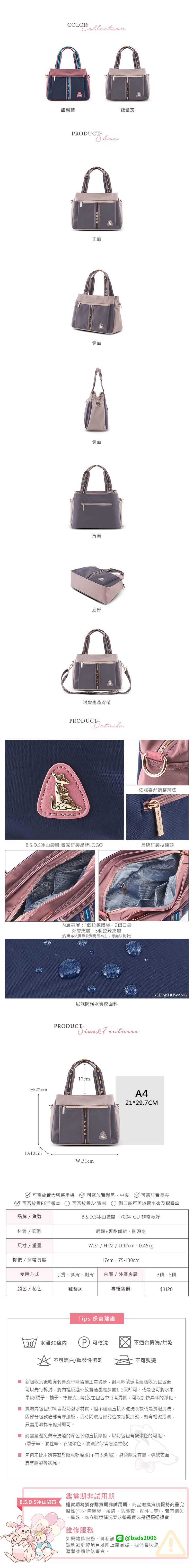 B.S.D.S冰山袋鼠 - 非常莓好 - 織帶拼接兩用購物包 - 藕紫灰【7004-GU】
