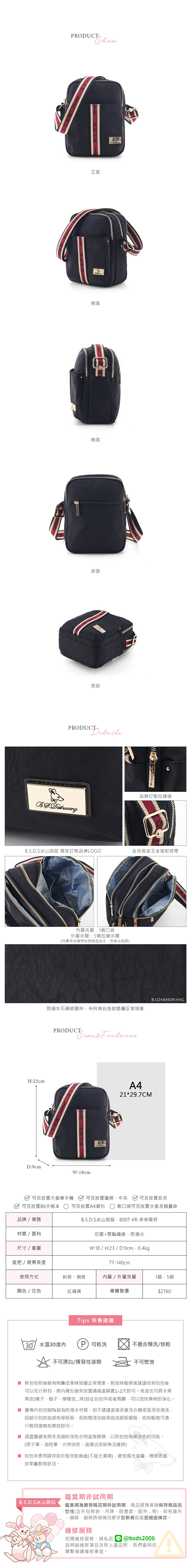 B.S.D.S冰山袋鼠 - 非常莓好 - 織帶拼接隨身收納包 - 紅磚黑【8007-KR】