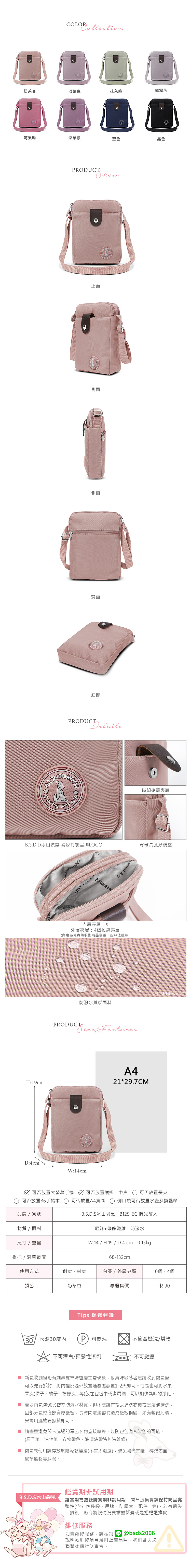 B.S.D.S冰山袋鼠 - 時光旅人 - 知性直立三層斜背小包 - 奶茶杏【B129-6C】