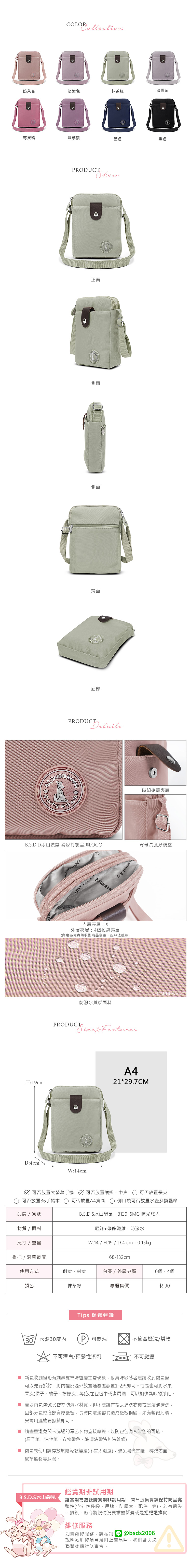 B.S.D.S冰山袋鼠 - 時光旅人 - 知性直立三層斜背小包 - 抹茶綠【B129-6MG】