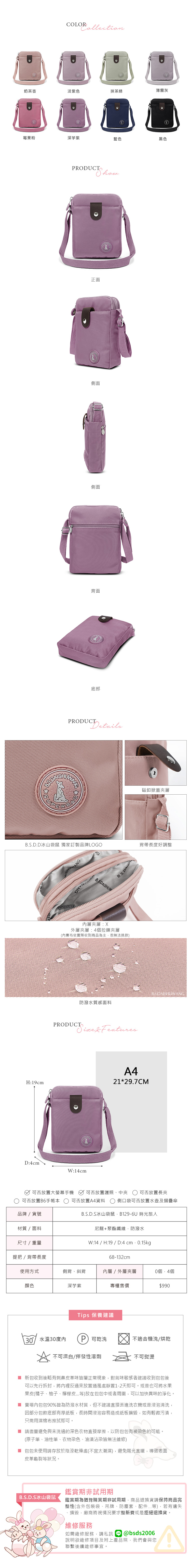 B.S.D.S冰山袋鼠 - 時光旅人 - 知性直立三層斜背小包 - 深芋紫【B129-6U】