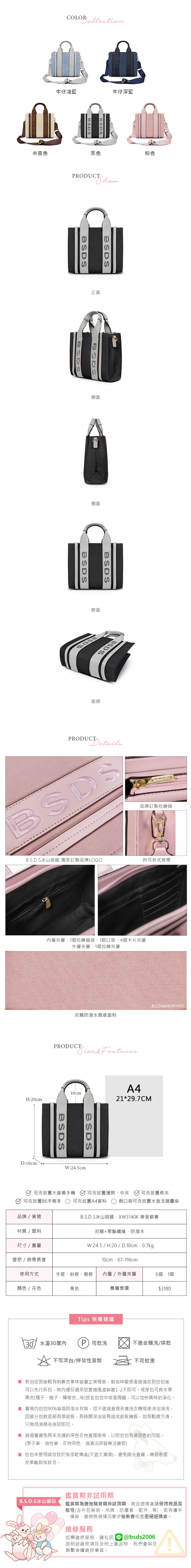 B.S.D.S冰山袋鼠 - 摩登都會 - 品牌刺繡兩用手提包 - 黑色【XW3140K】