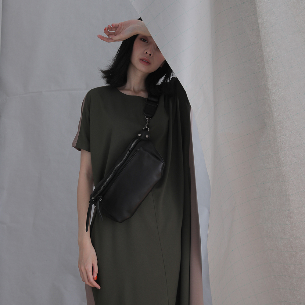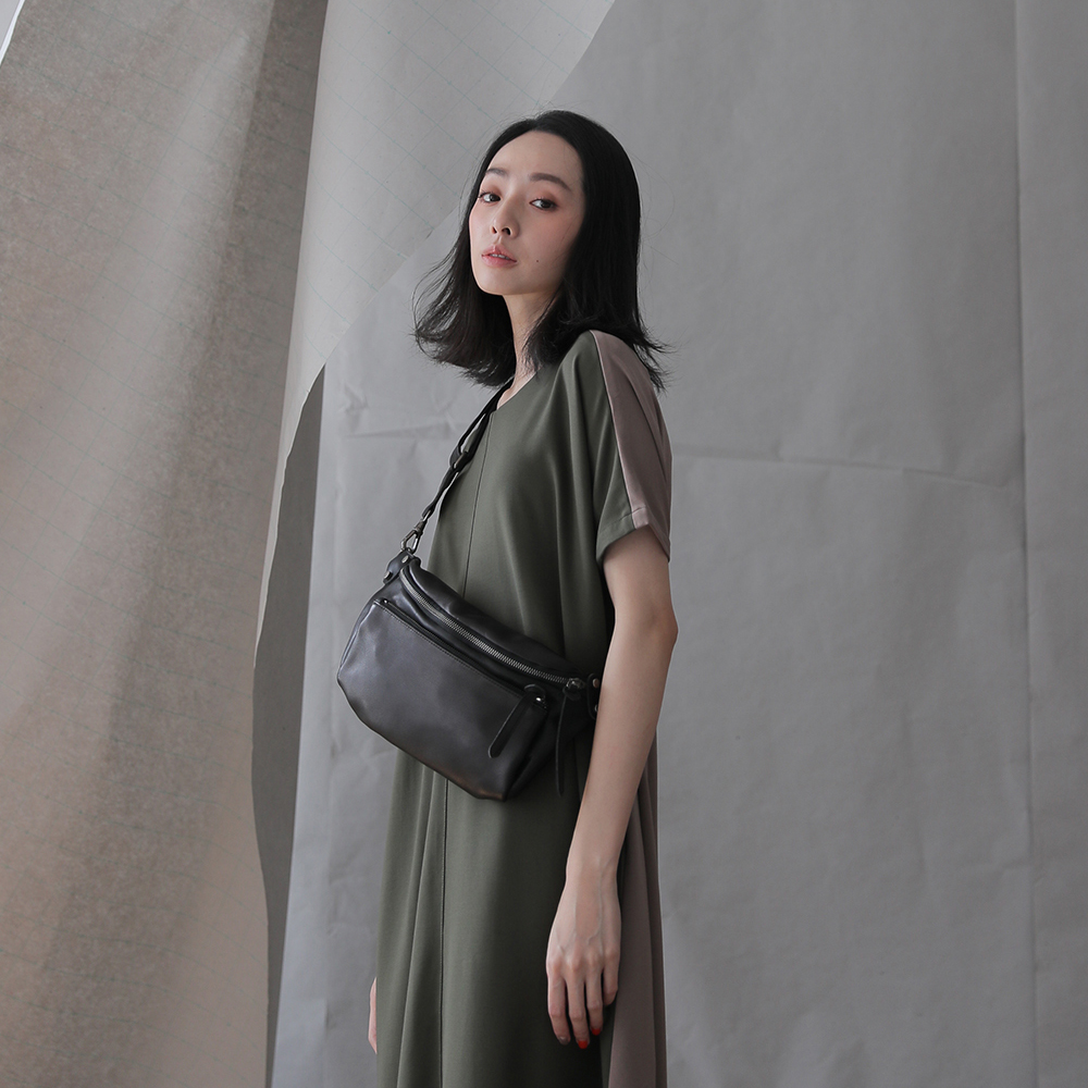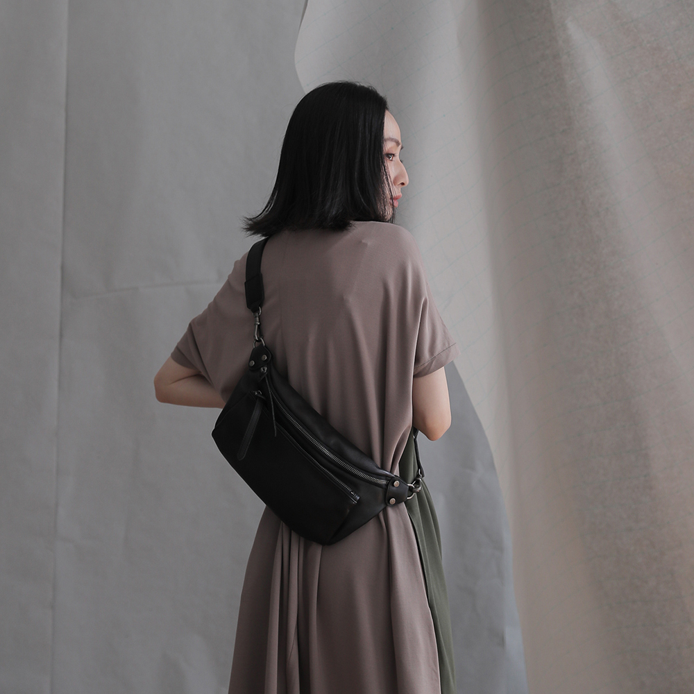 supportingrole 個性鉚釘 真皮隨身腰包 側背包黑