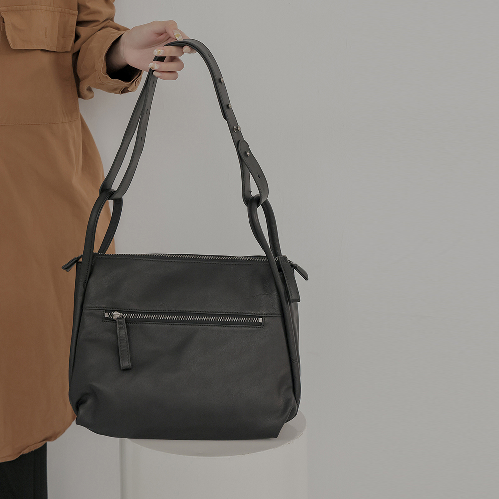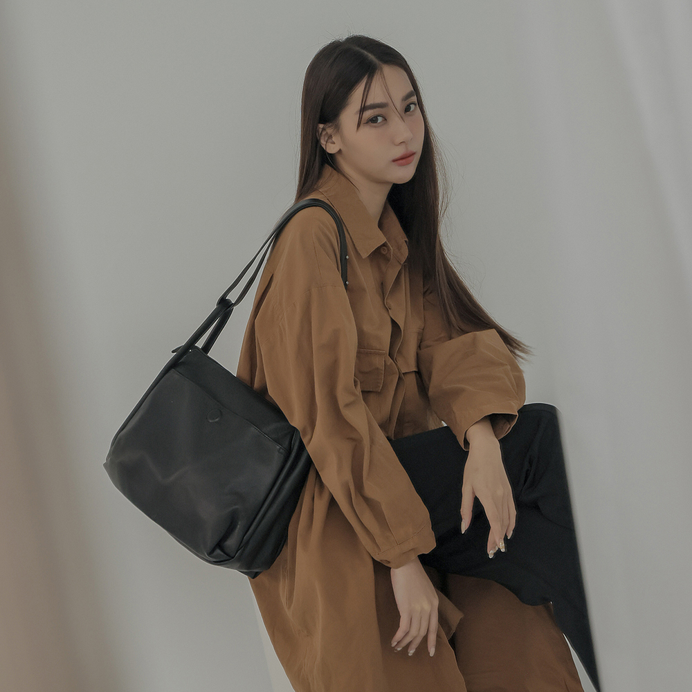 supportingrole 馬鞍設計簡單實用肩背隨身包側背包 黑