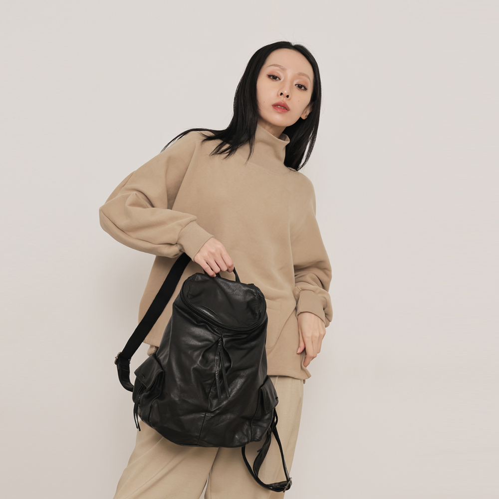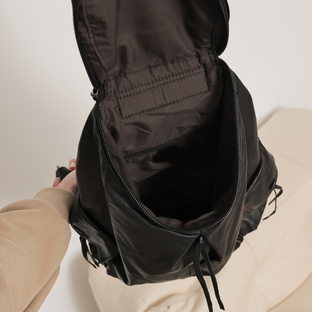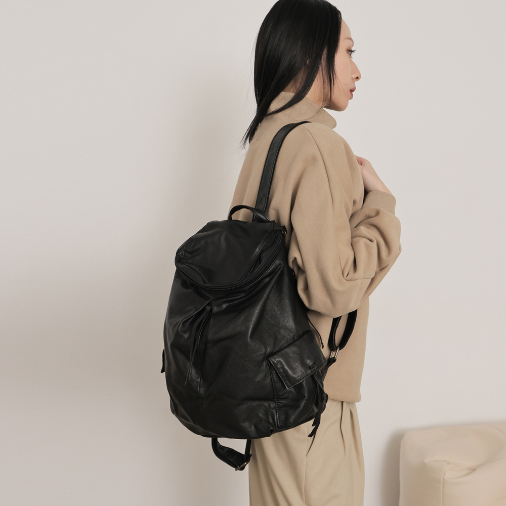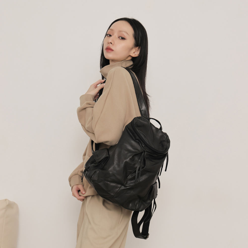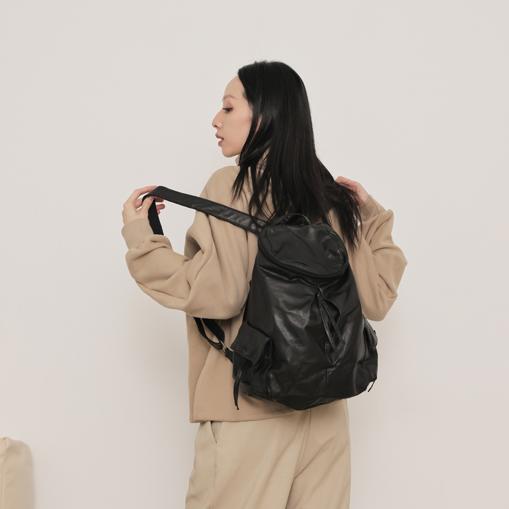supportingrole 輕量羊皮多口袋分層後背包 黑