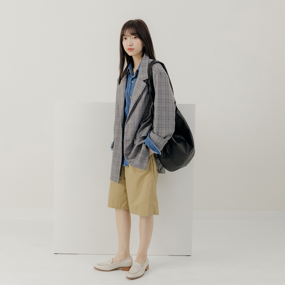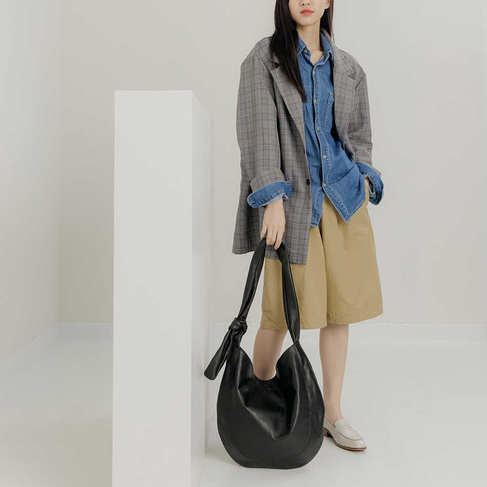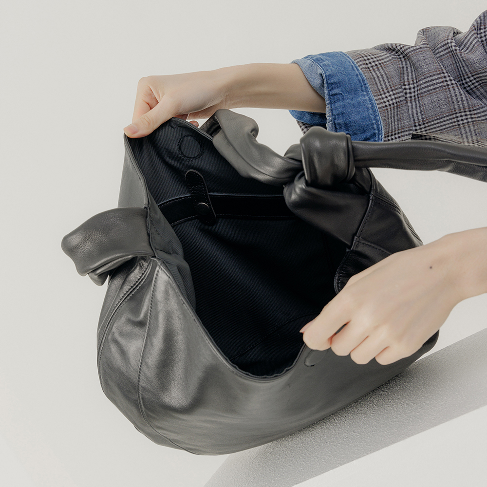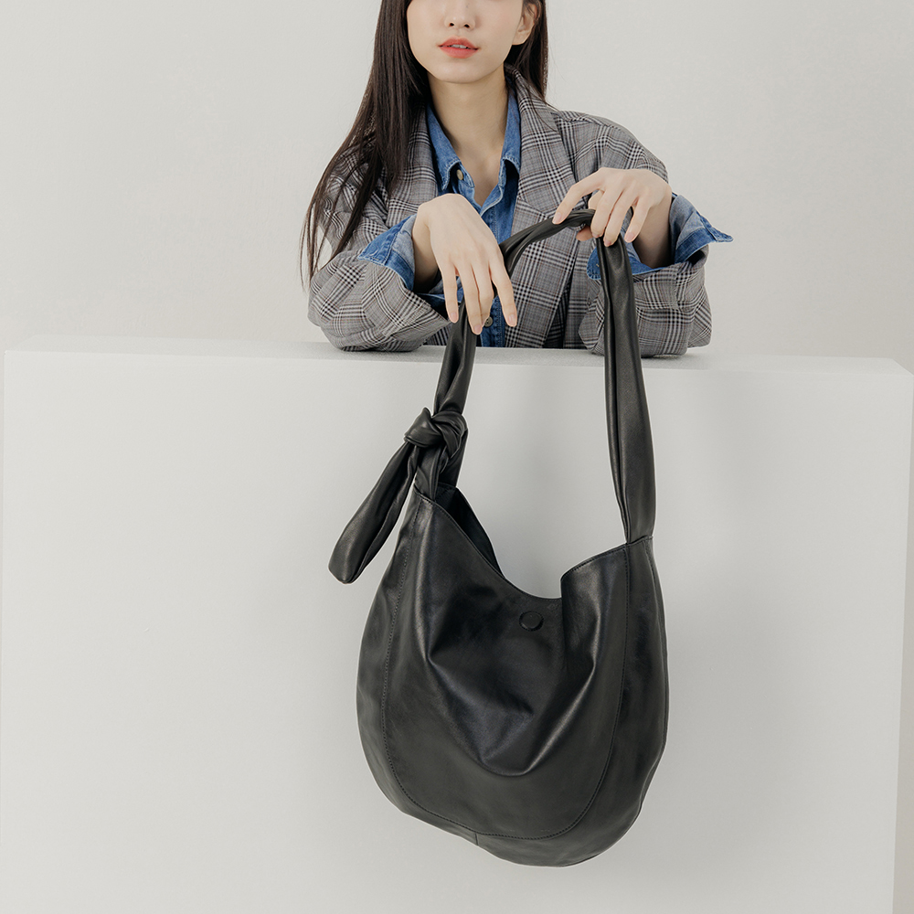 supportingrole 真皮優雅摩登都市肩側手提背包 黑