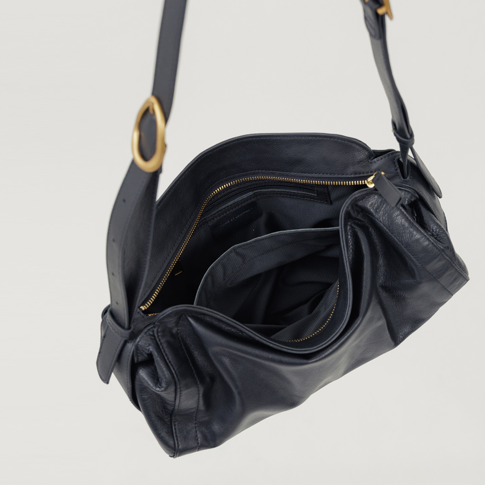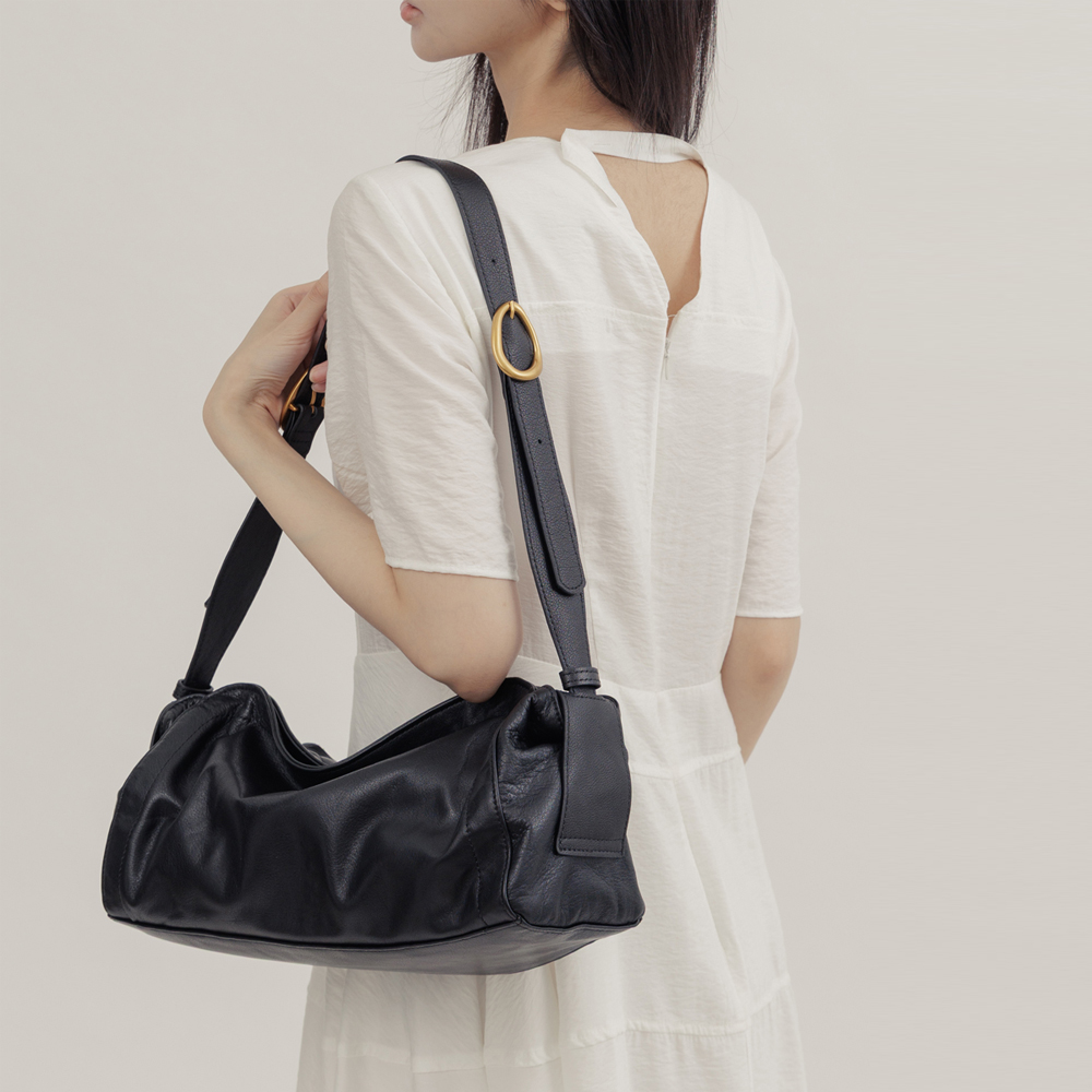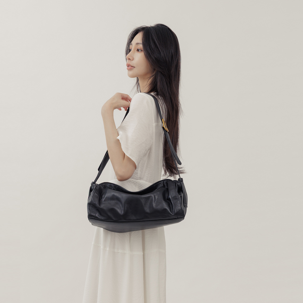 supportingrole 慵懶格調廓型結構真皮手提肩斜背包 黑