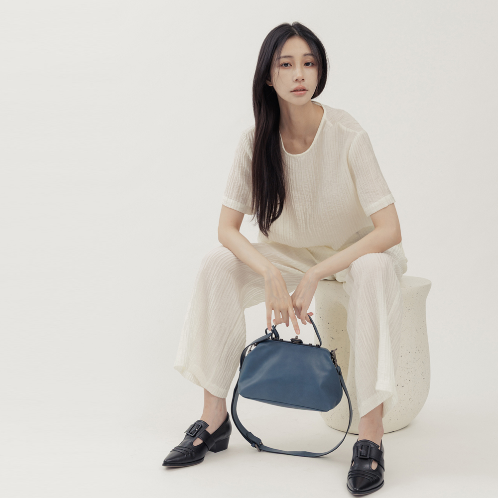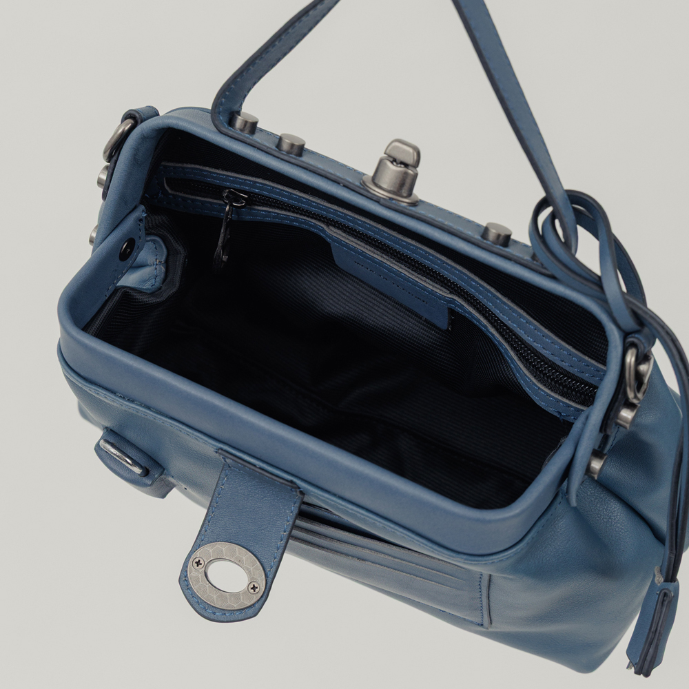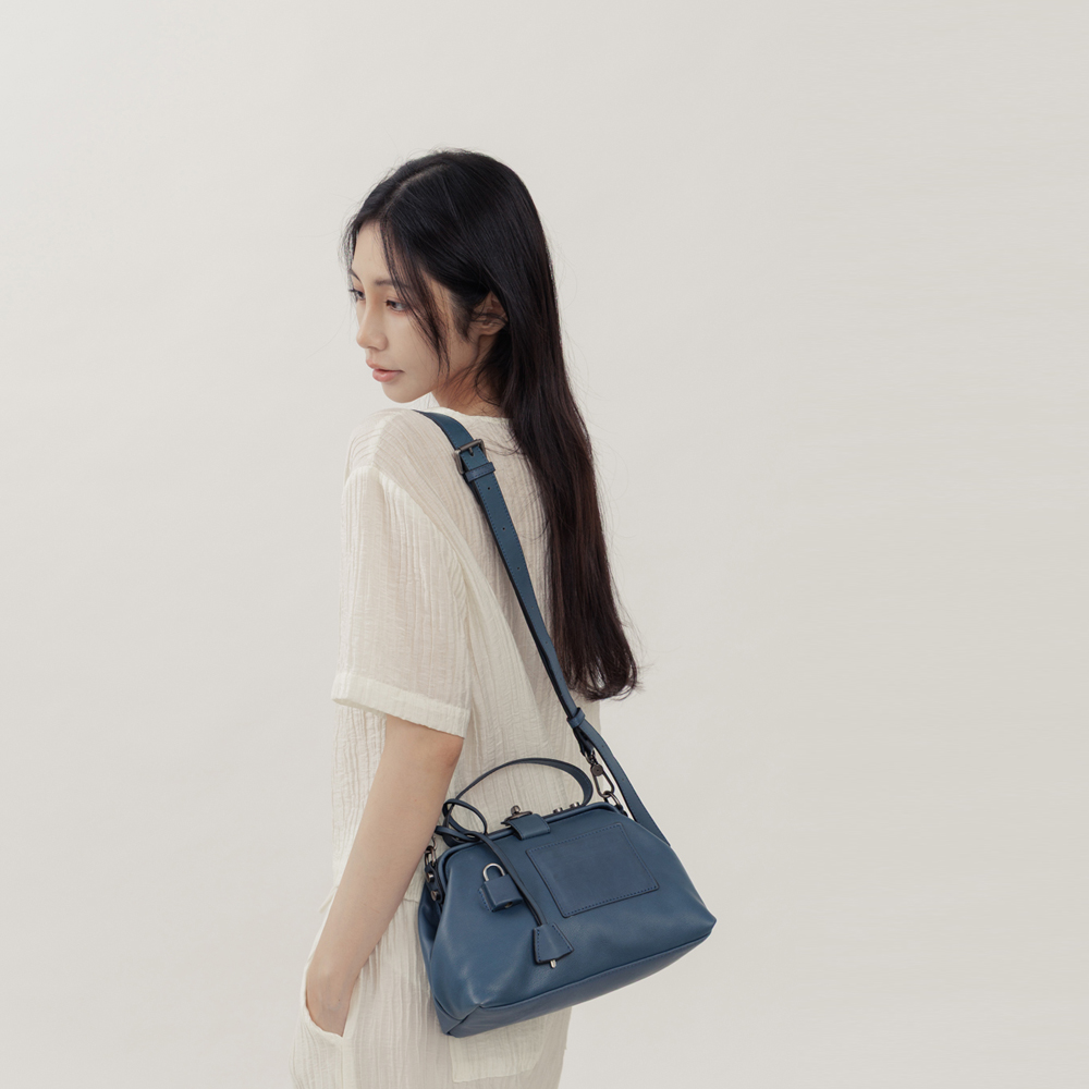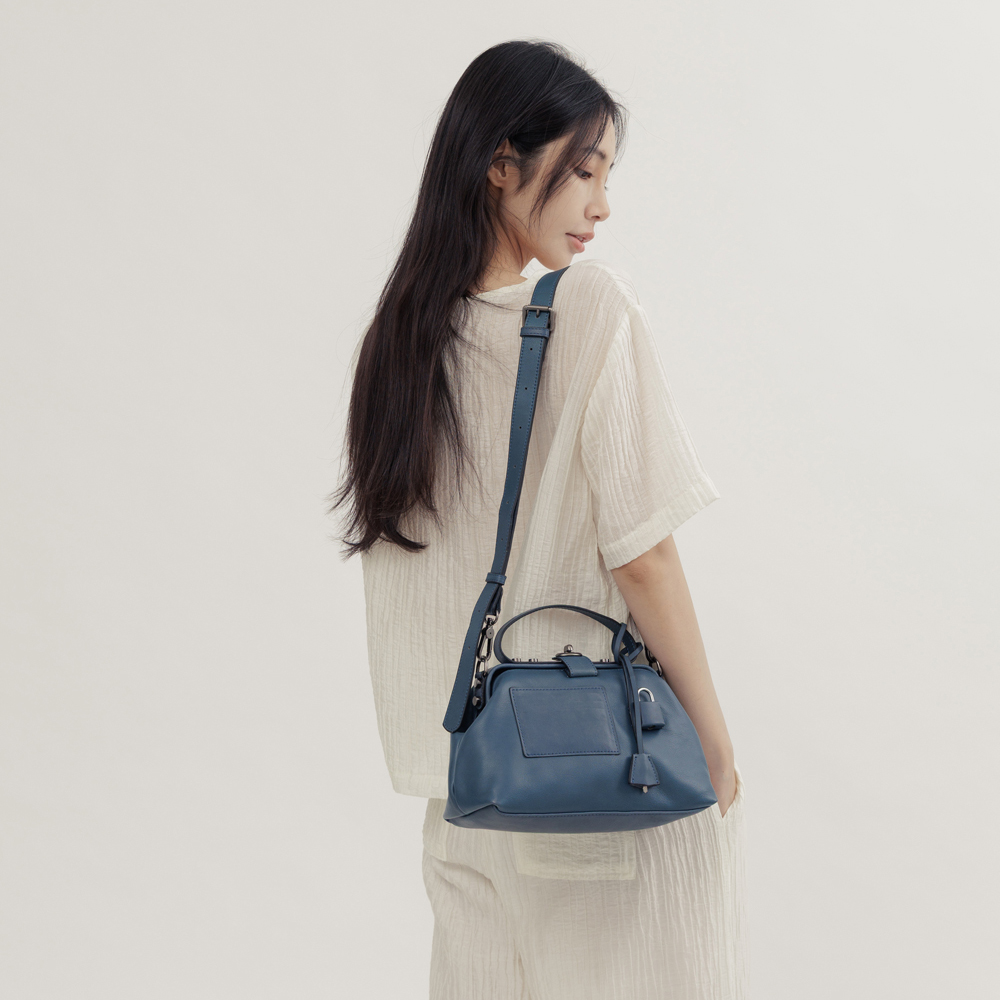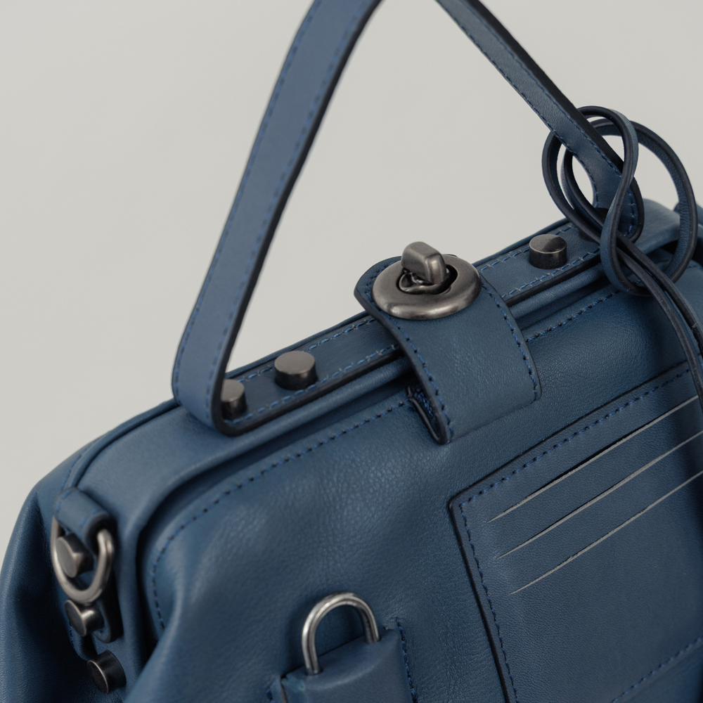supportingrole 鉚釘鎖頭鑰匙真皮手提肩斜背3用醫生包 灰藍