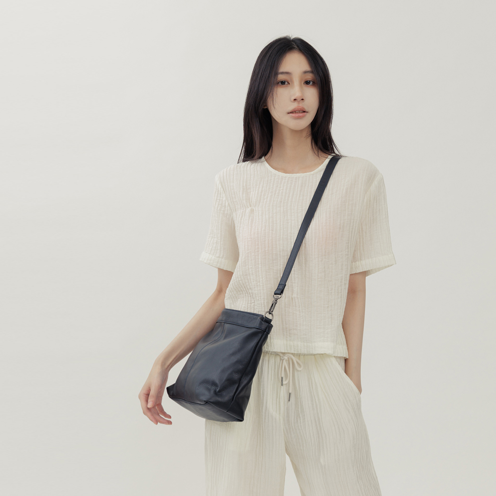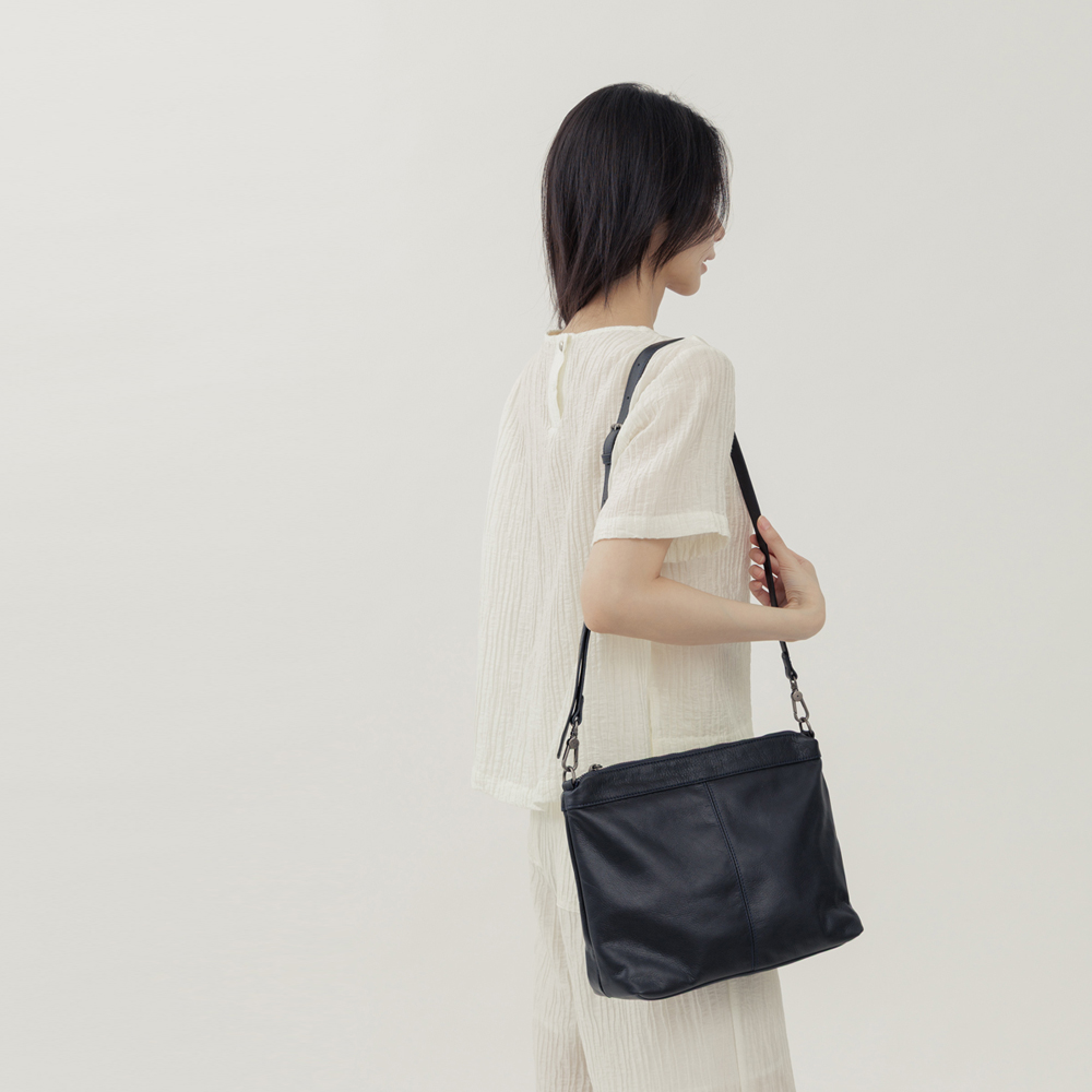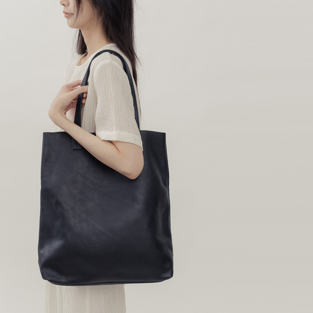 supportingrole 簡約設計子母包真皮手提肩側背托特包 黑