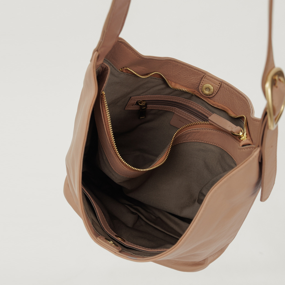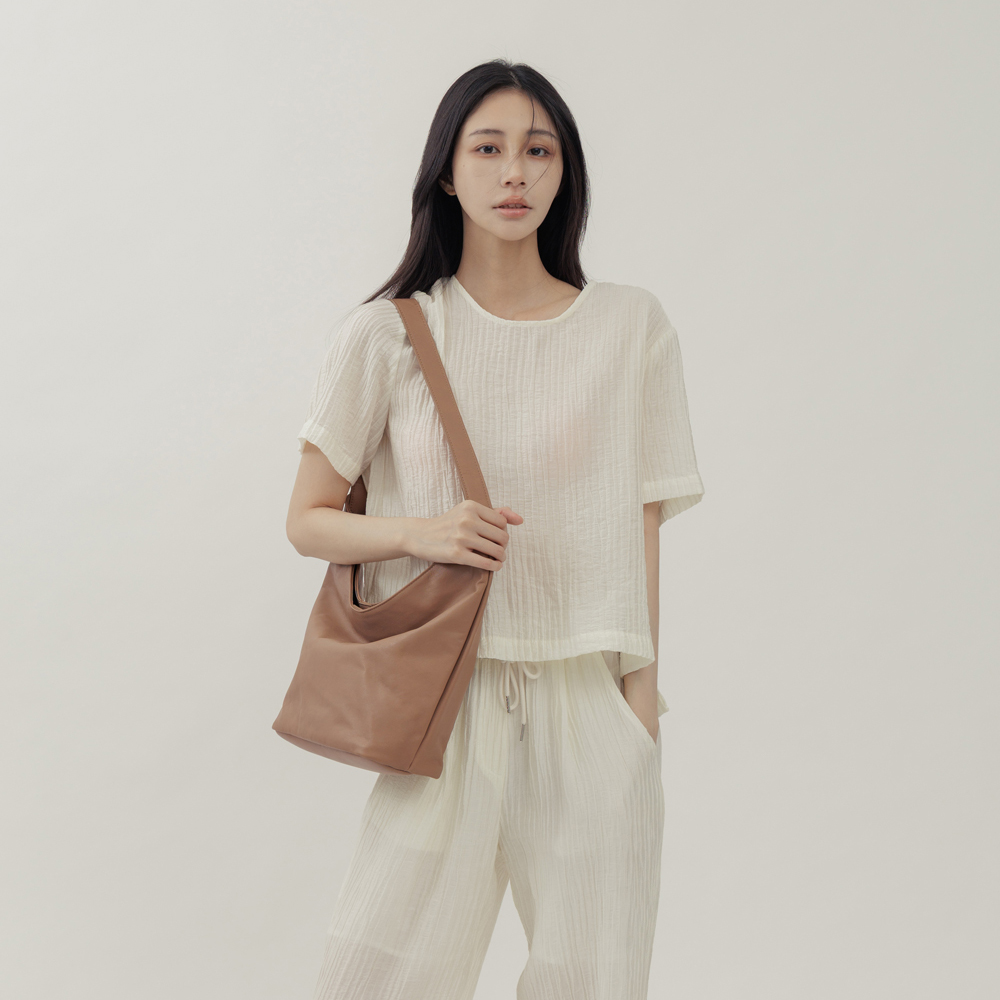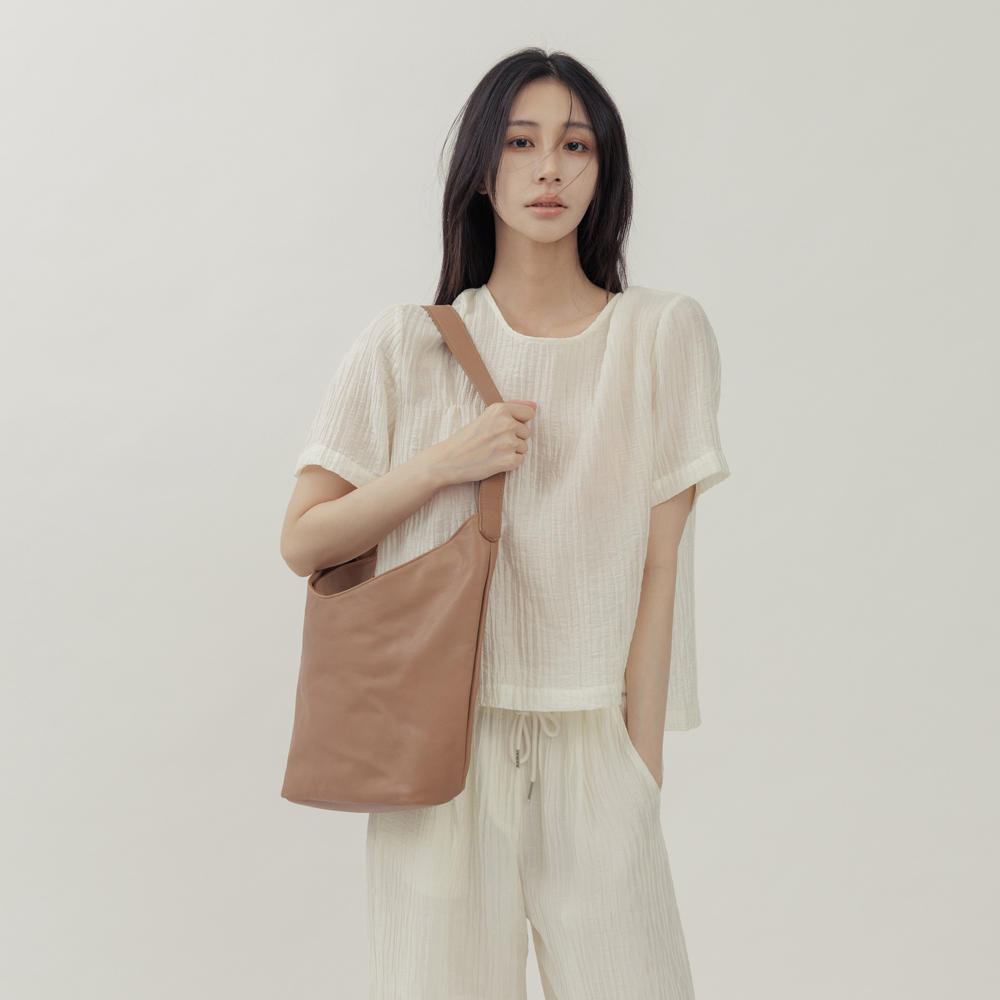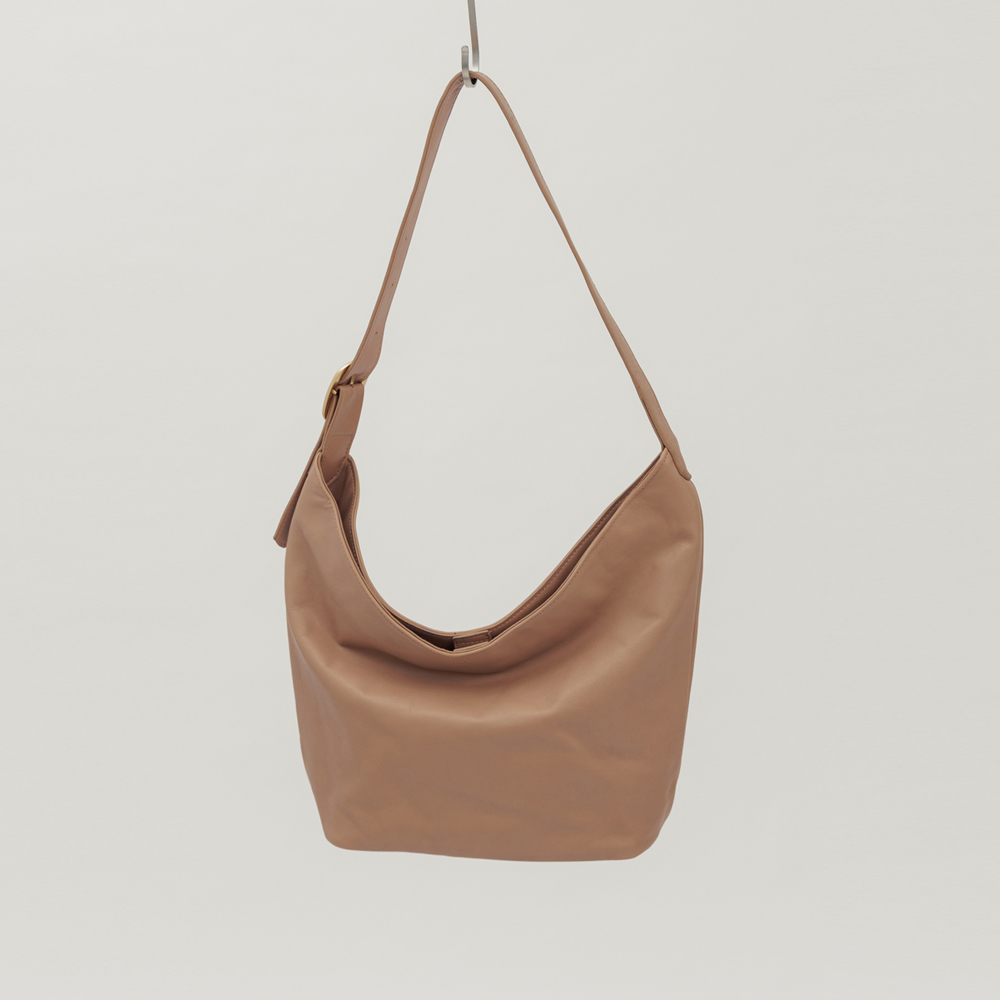 supportingrole 靈活搭配多分層簡潔真皮肩斜背包 奶茶