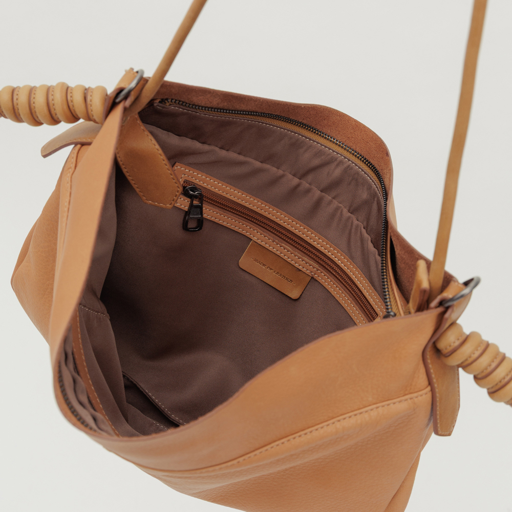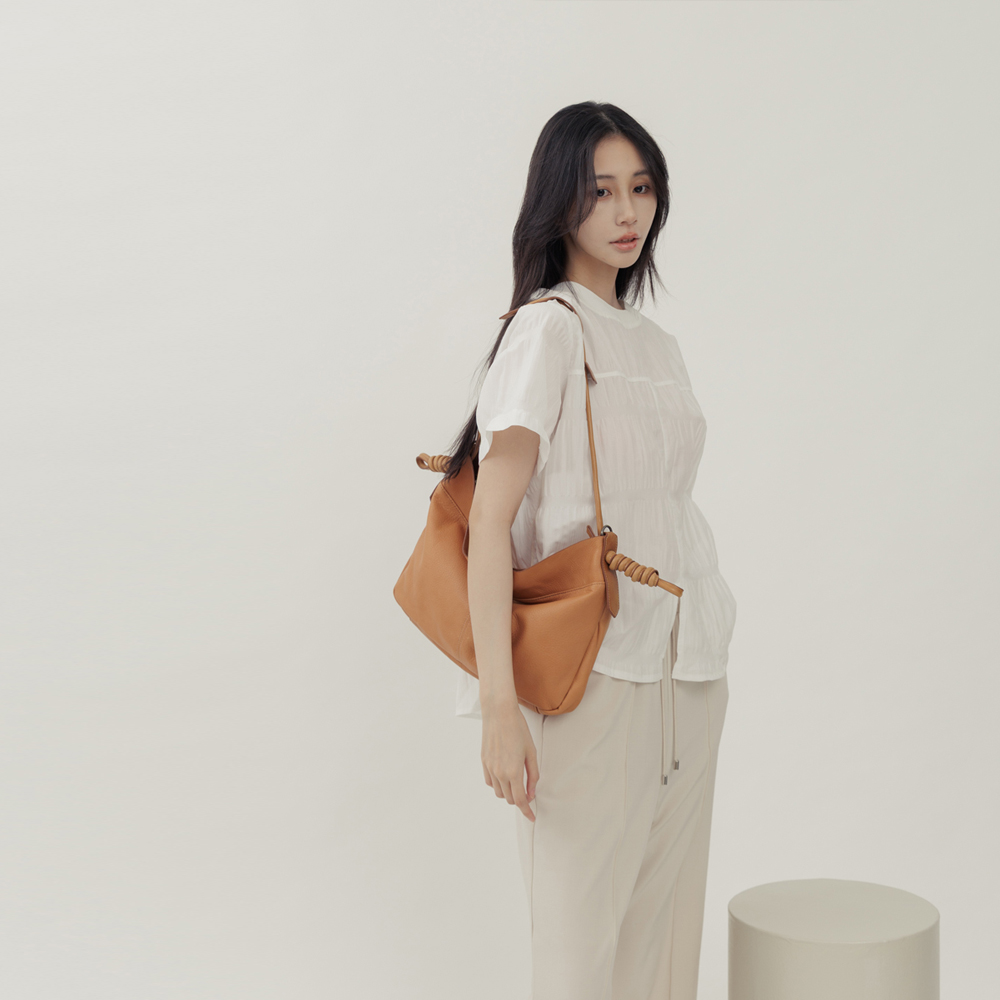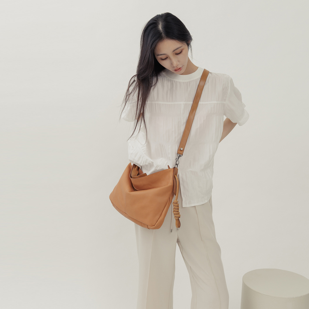 supportingrole 綁結設計寬廓型結構真皮手提肩斜背3用托特包 咖啡