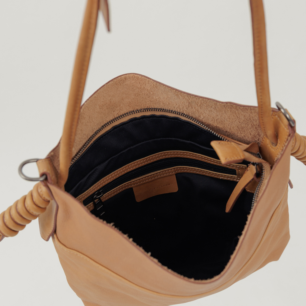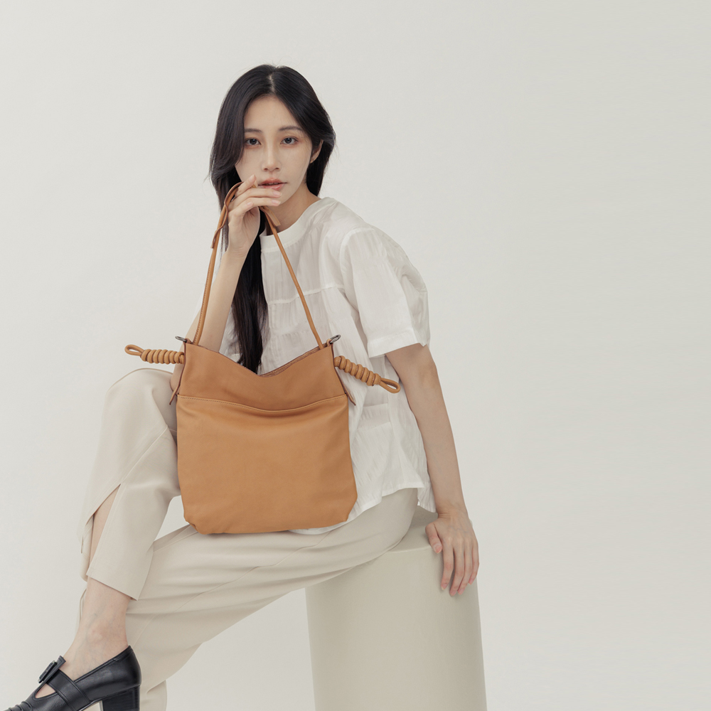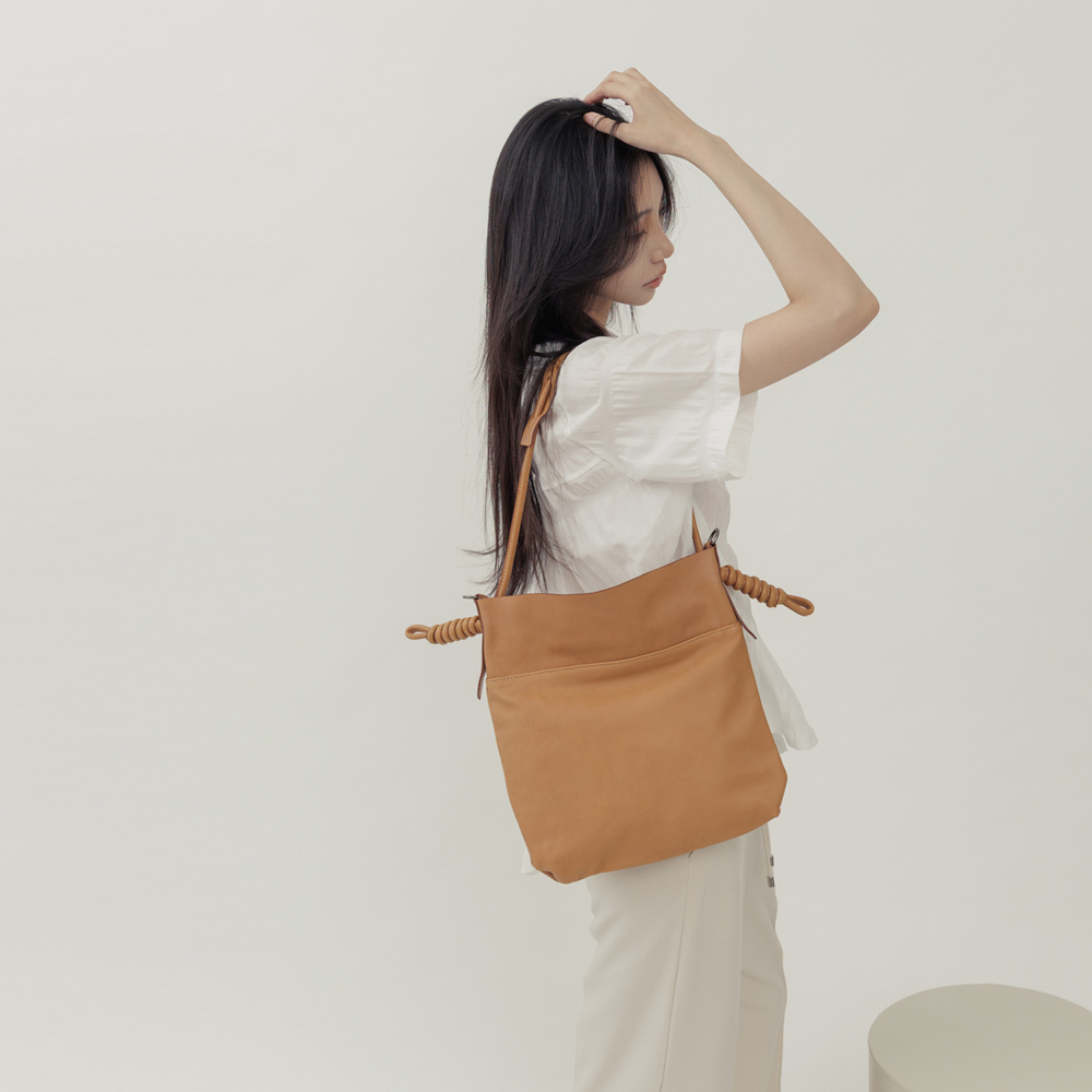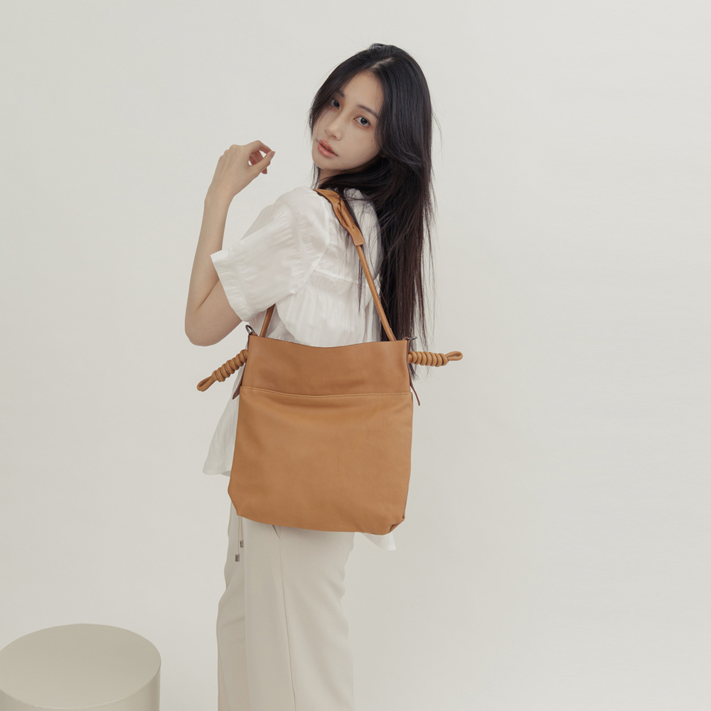 supportingrole 綁結設計廓型結構真皮手提肩斜背3用托特包 焦糖咖啡