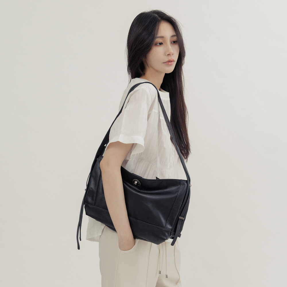 supportingrole 優雅時尚真皮多功能3用手提肩側背包 黑