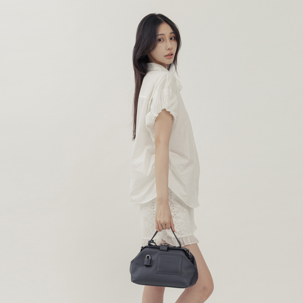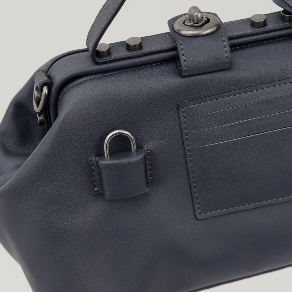 supportingrole 鉚釘鎖頭鑰匙真皮手提肩斜背3用醫生包 黑