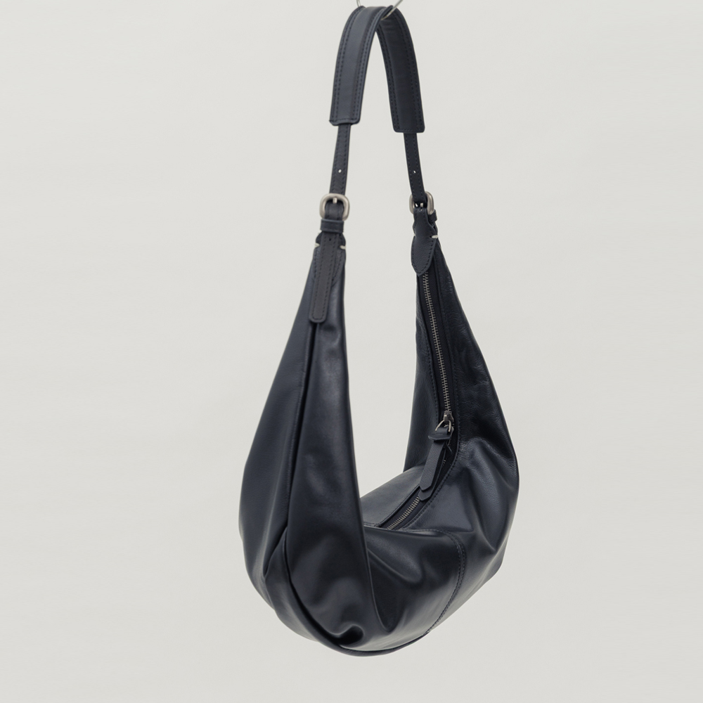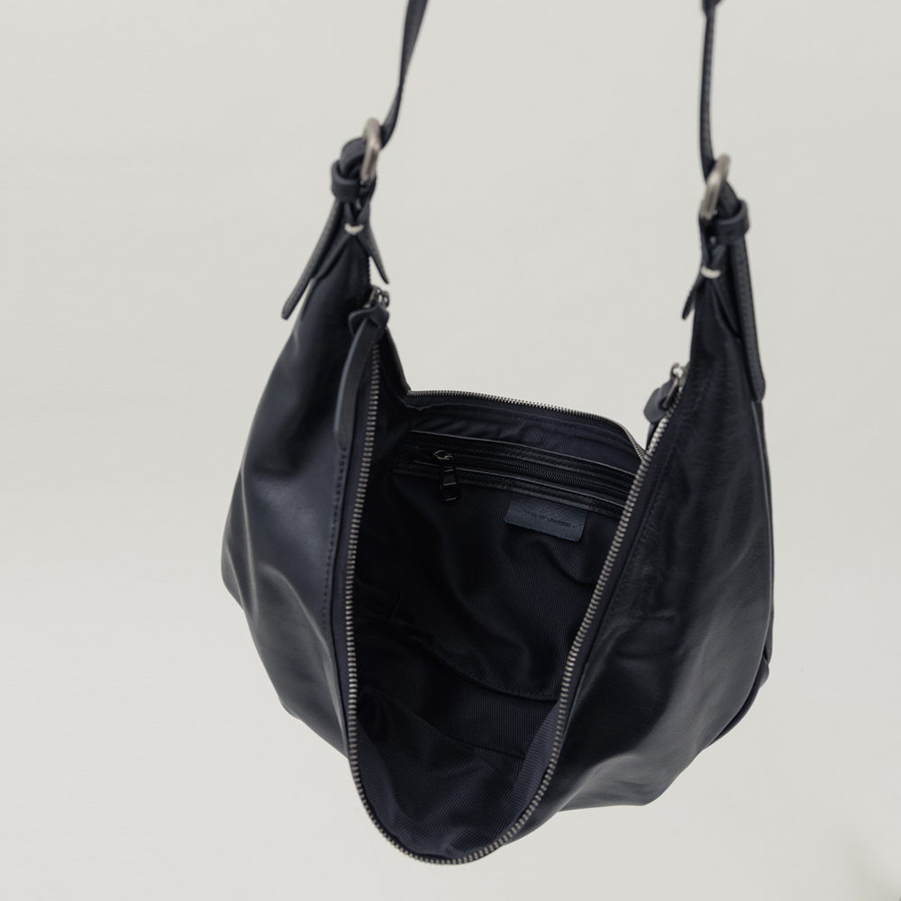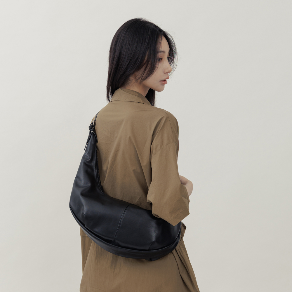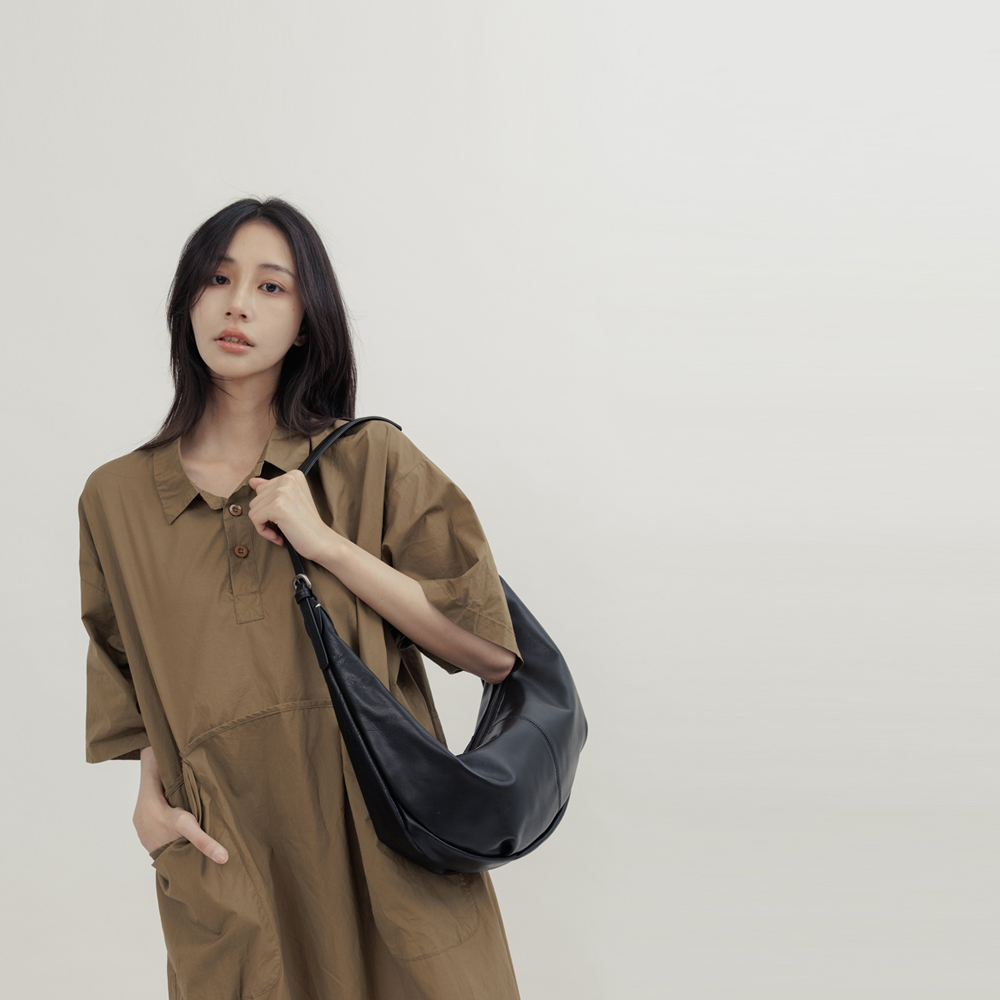 supportingrole 月牙垂墜慵懶時髦真皮手提肩斜背3用包 黑