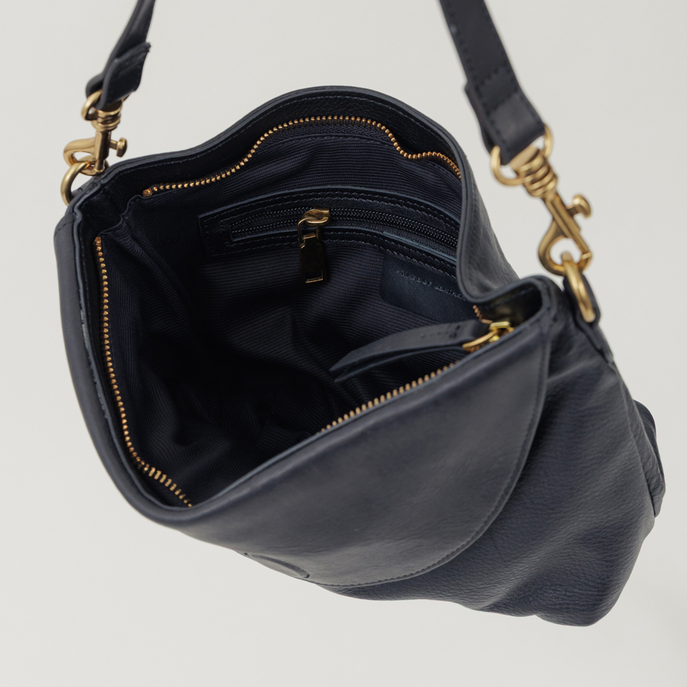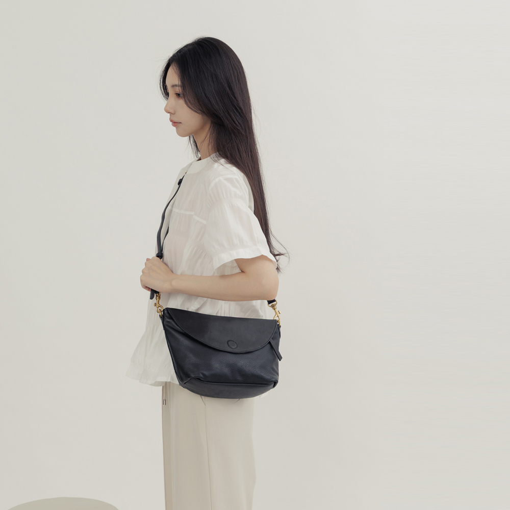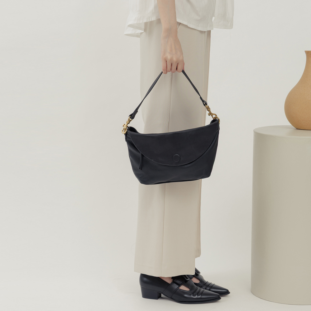 supportingrole 法式慵懶垂墜時髦真皮手提肩斜背3用包 黑