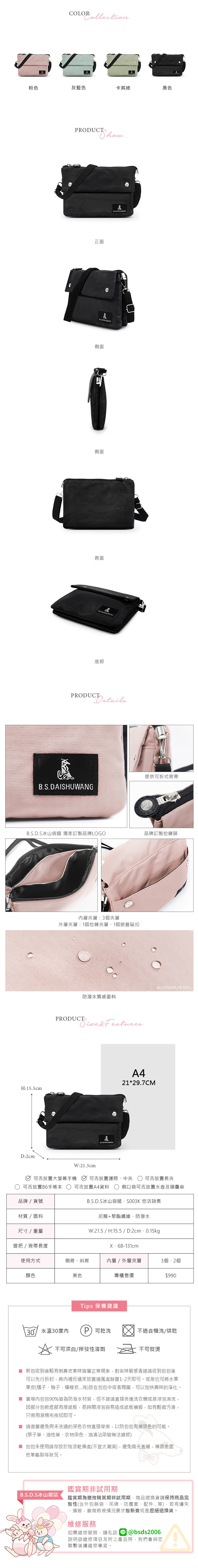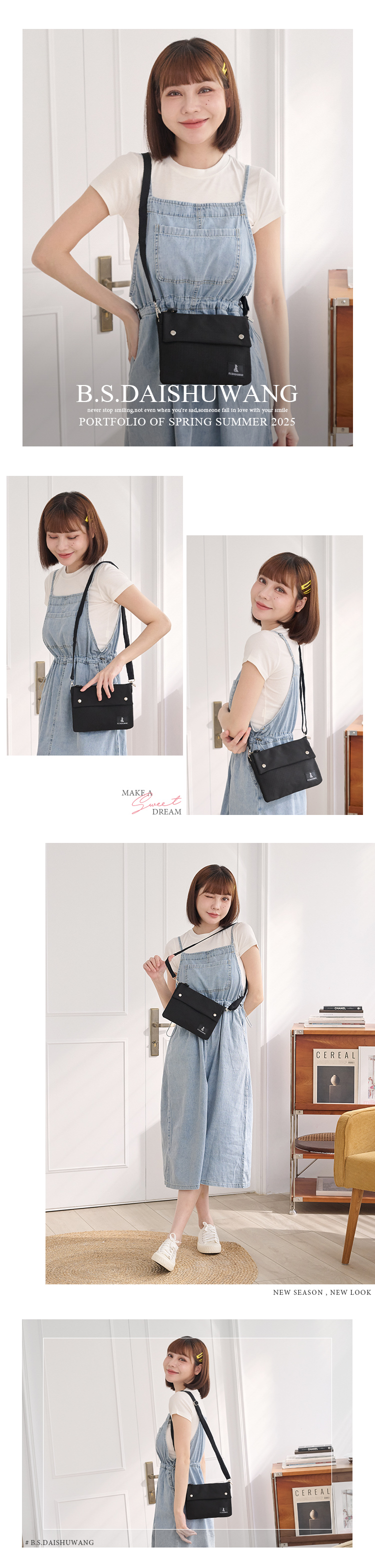 B.S.D.S冰山袋鼠 - 悠活詩集 - 格紋橫式三層斜背小包 - 黑色【S003K】