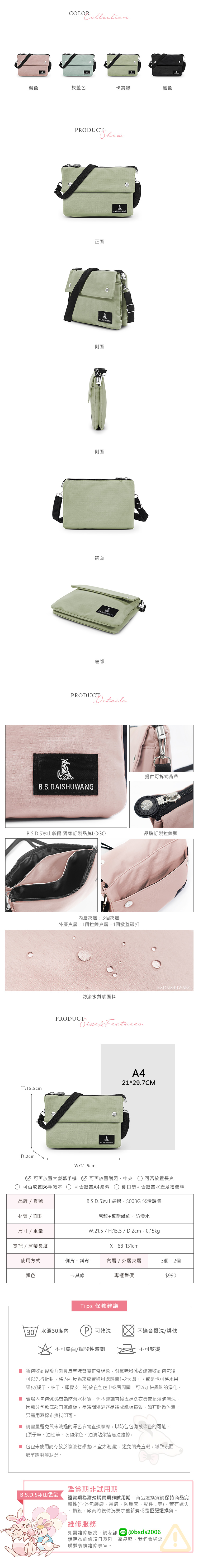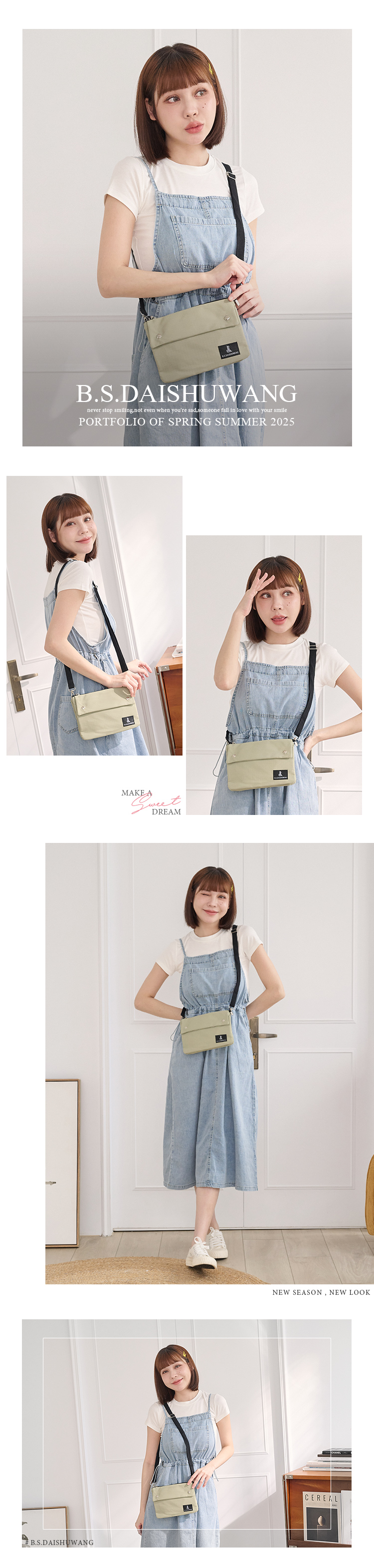 B.S.D.S冰山袋鼠 - 悠活詩集 - 格紋橫式三層斜背小包 - 卡其綠【S003G】