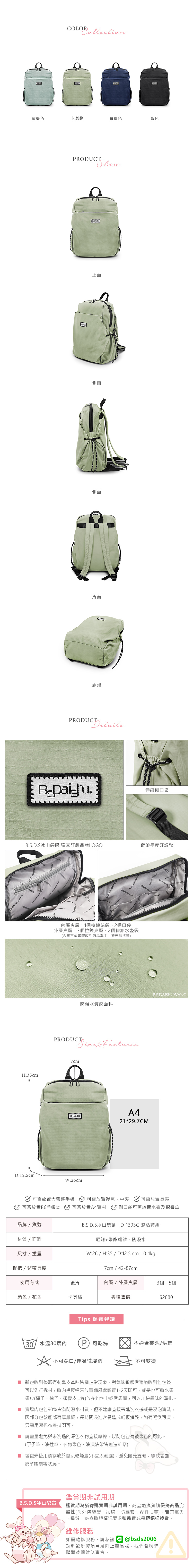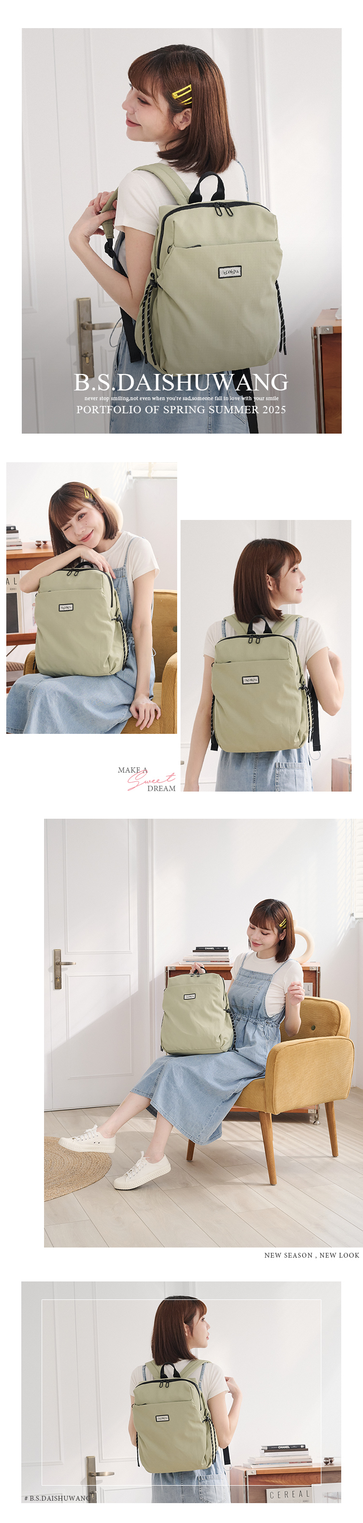 B.S.D.S冰山袋鼠 - 悠活詩集 - 格紋學院風後背包 - 卡其綠【D-1393G】