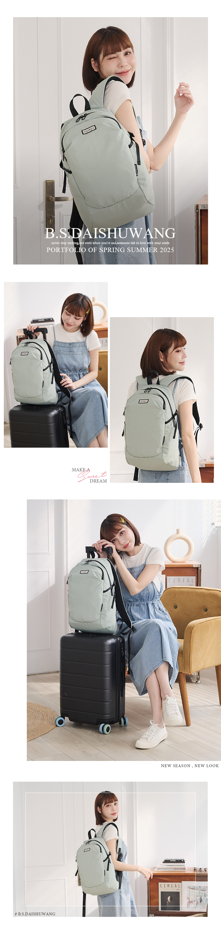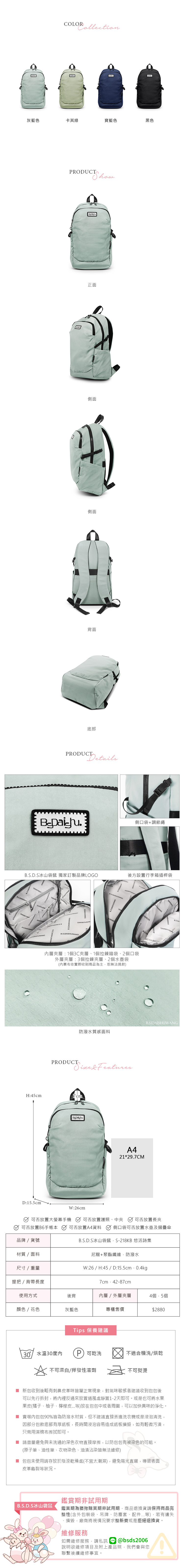 B.S.D.S冰山袋鼠 - 悠活詩集 - 格紋多口袋附插袋後背包 - 灰藍色【S-218KB】