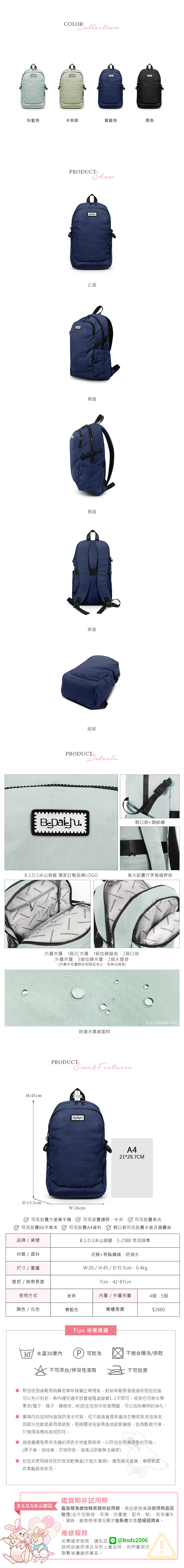 B.S.D.S冰山袋鼠 - 悠活詩集 - 格紋多口袋附插袋後背包 - 寶藍色【S-218B】