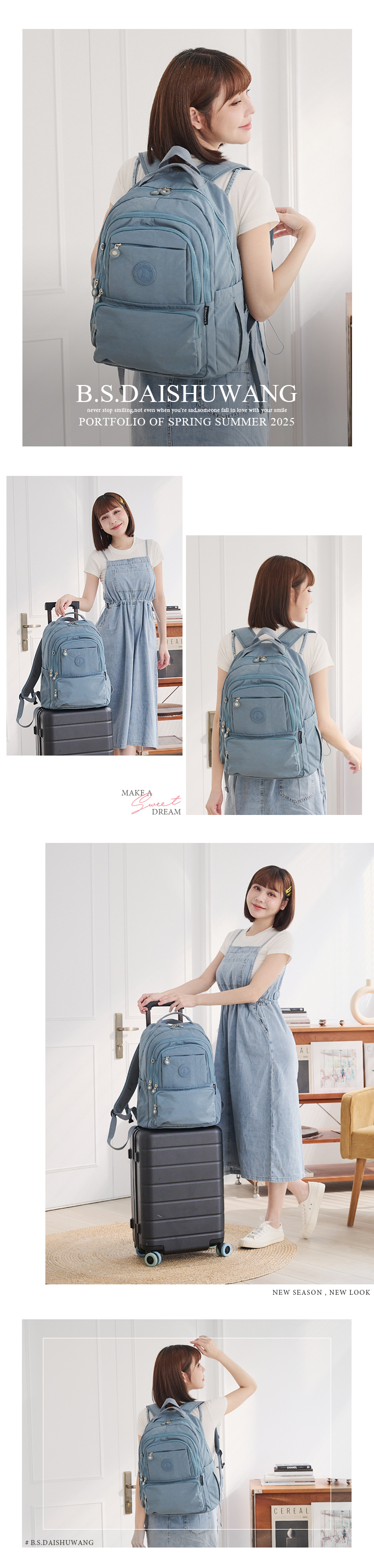 B.S.D.S冰山袋鼠 - 蜜糖日記 - 輕旅多口袋附插袋胸扣後背包 - 牛仔藍【A218KB】