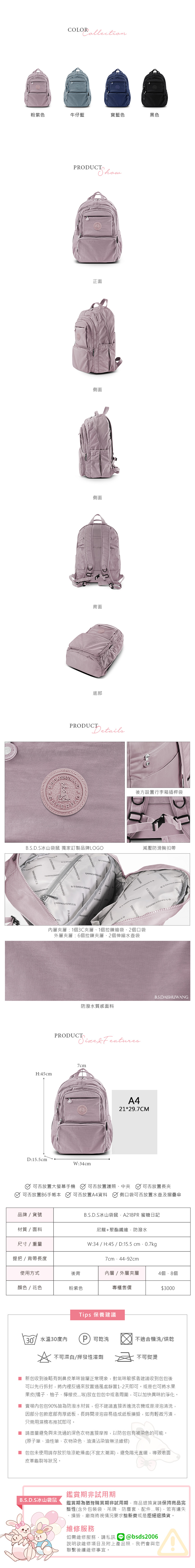 B.S.D.S冰山袋鼠 - 蜜糖日記 - 輕旅多口袋附插袋胸扣後背包 - 粉紫色【A218PR】