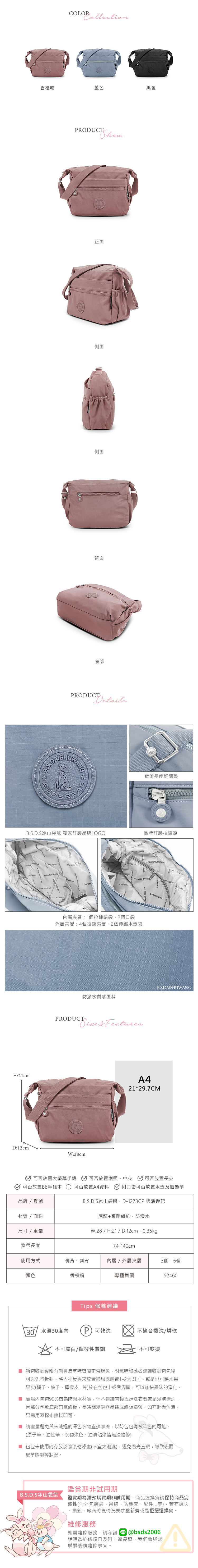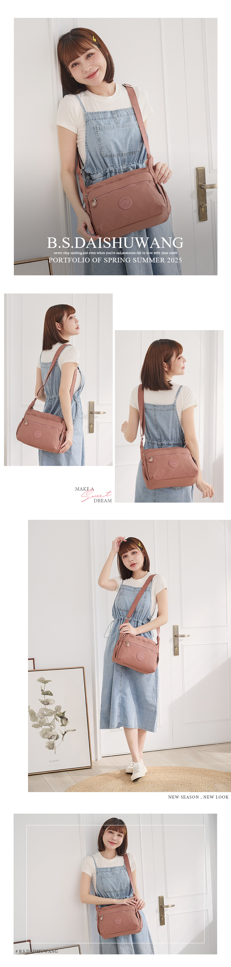 B.S.D.S冰山袋鼠 - 樂活遊記 - 格紋多夾層斜背包 - 香檳粉【D-1273CP】