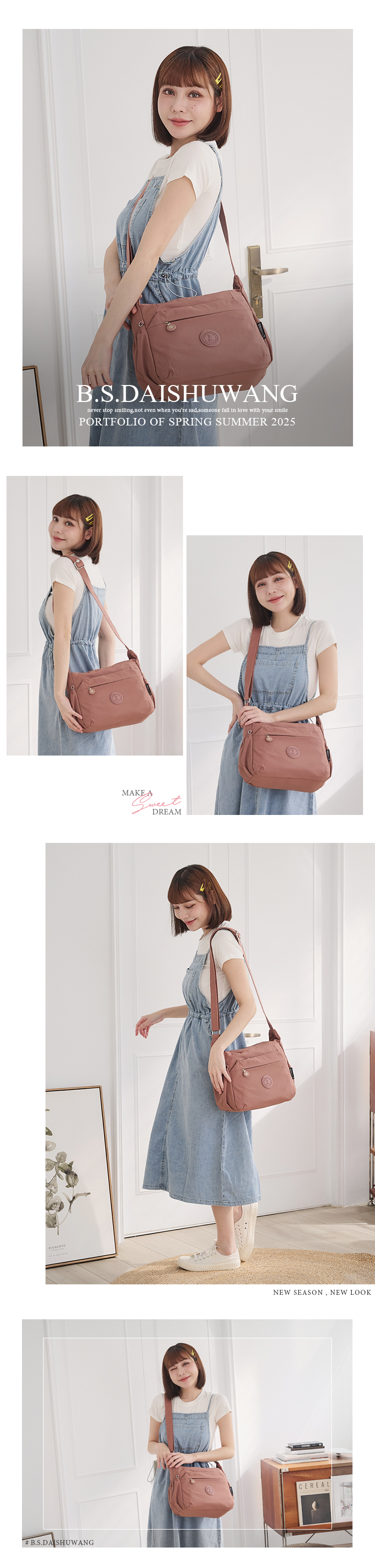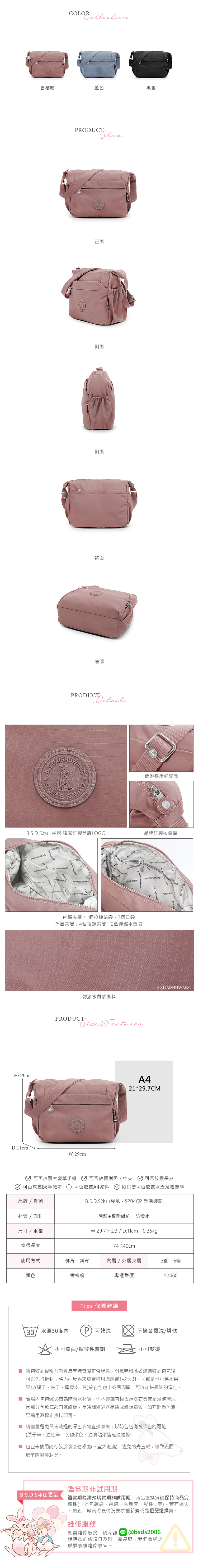 B.S.D.S冰山袋鼠 - 樂活遊記 - 格紋多層收納斜背包 - 香檳粉【S204CP】