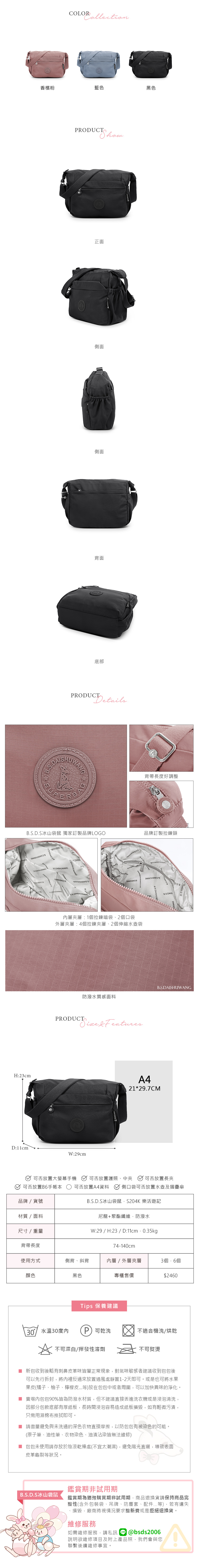 B.S.D.S冰山袋鼠 - 樂活遊記 - 格紋多層收納斜背包 - 黑色【S204K】