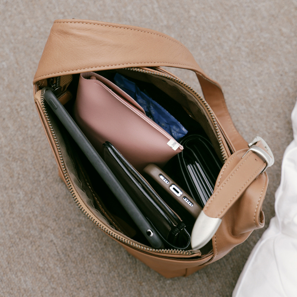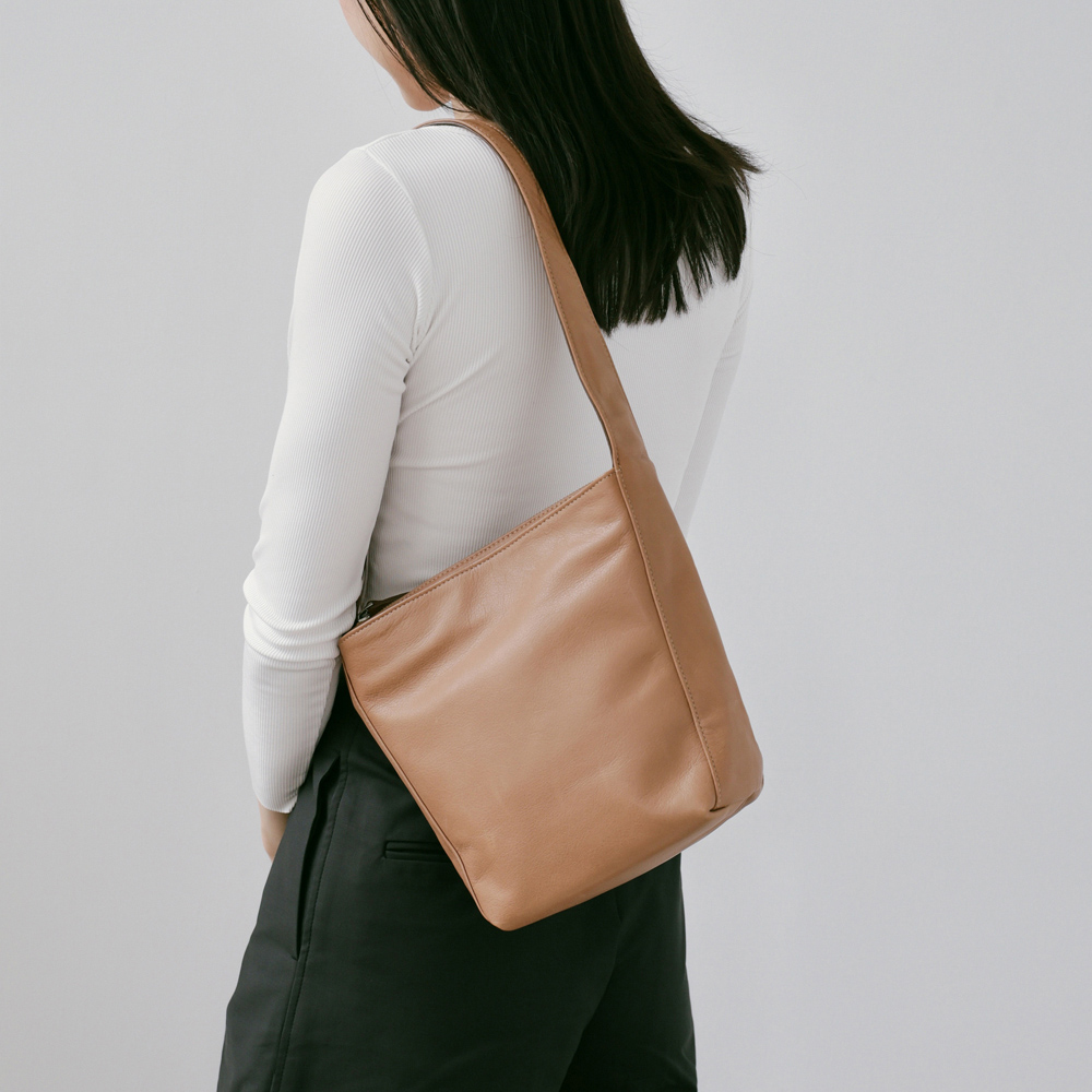 Supportingrole簡約百搭輕量兩用真皮手提肩背腋下托特包 焦糖奶茶