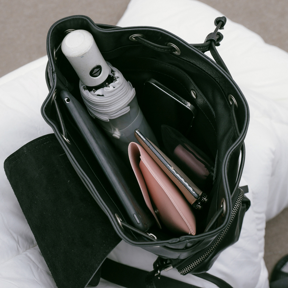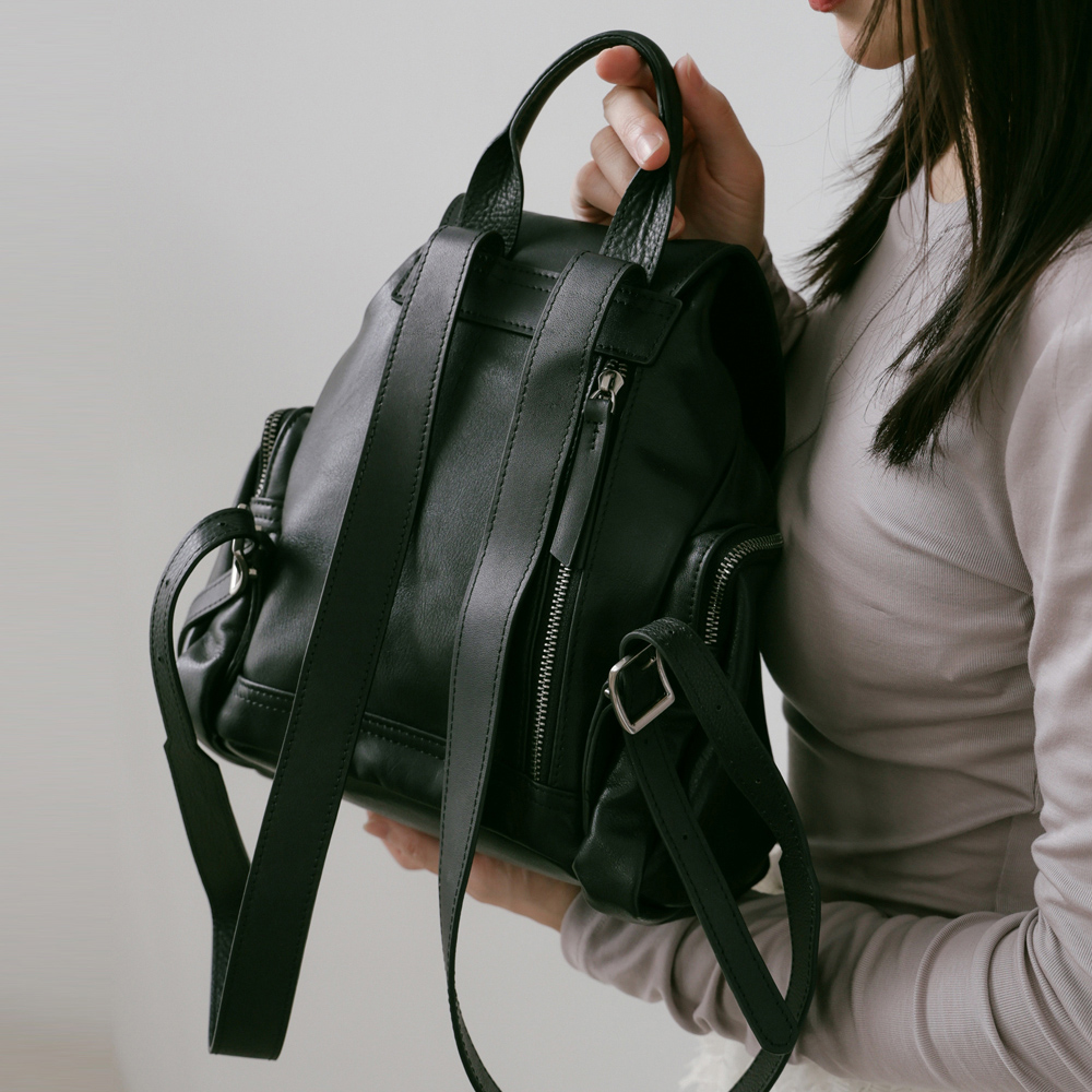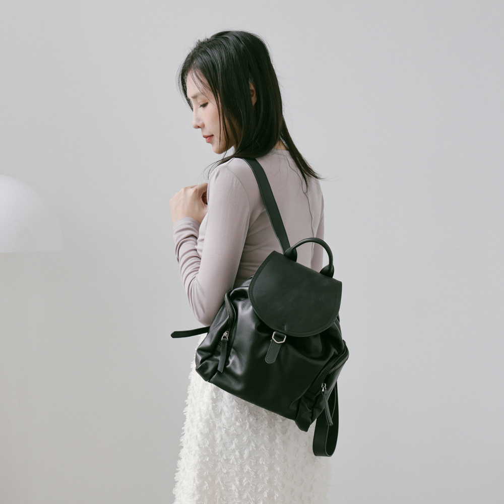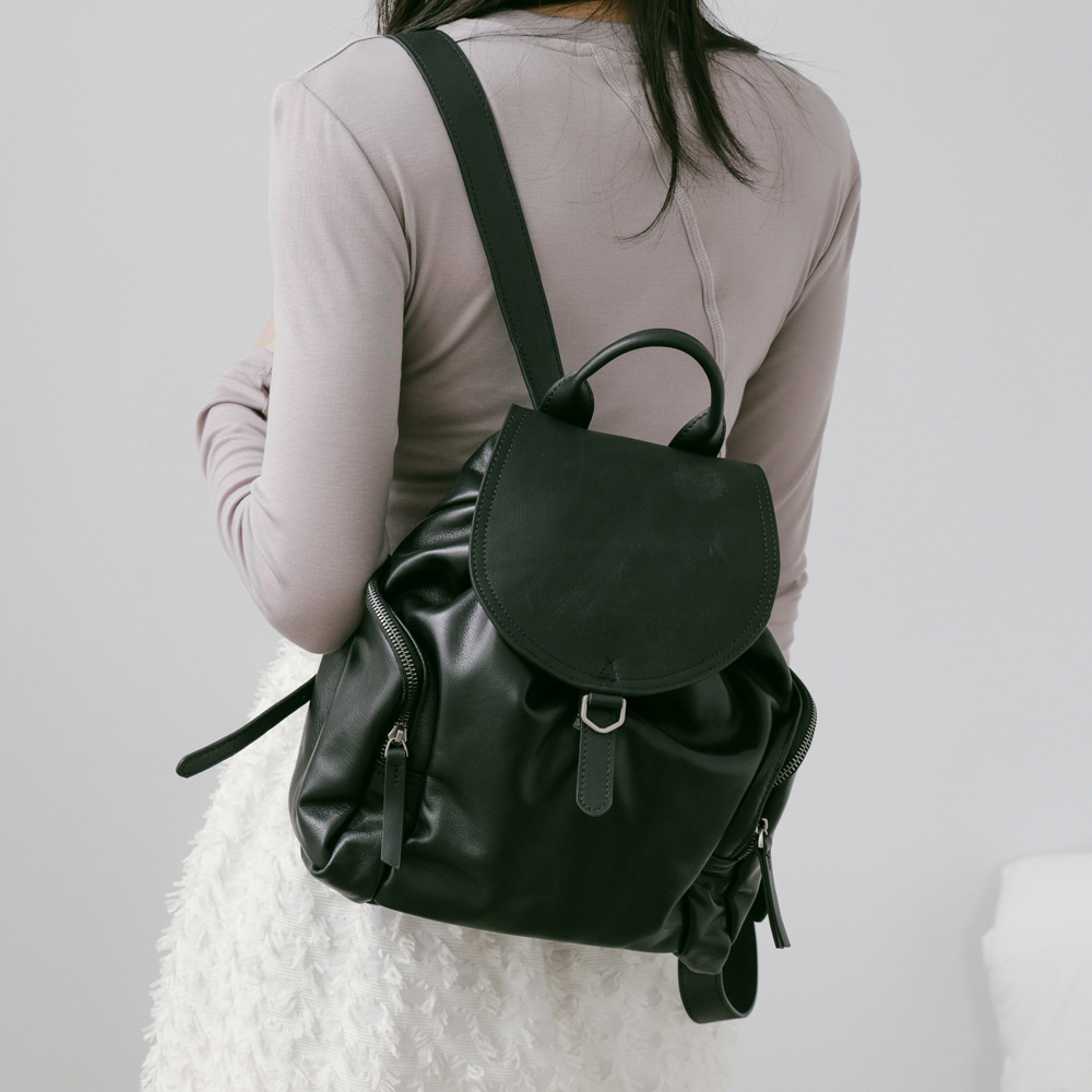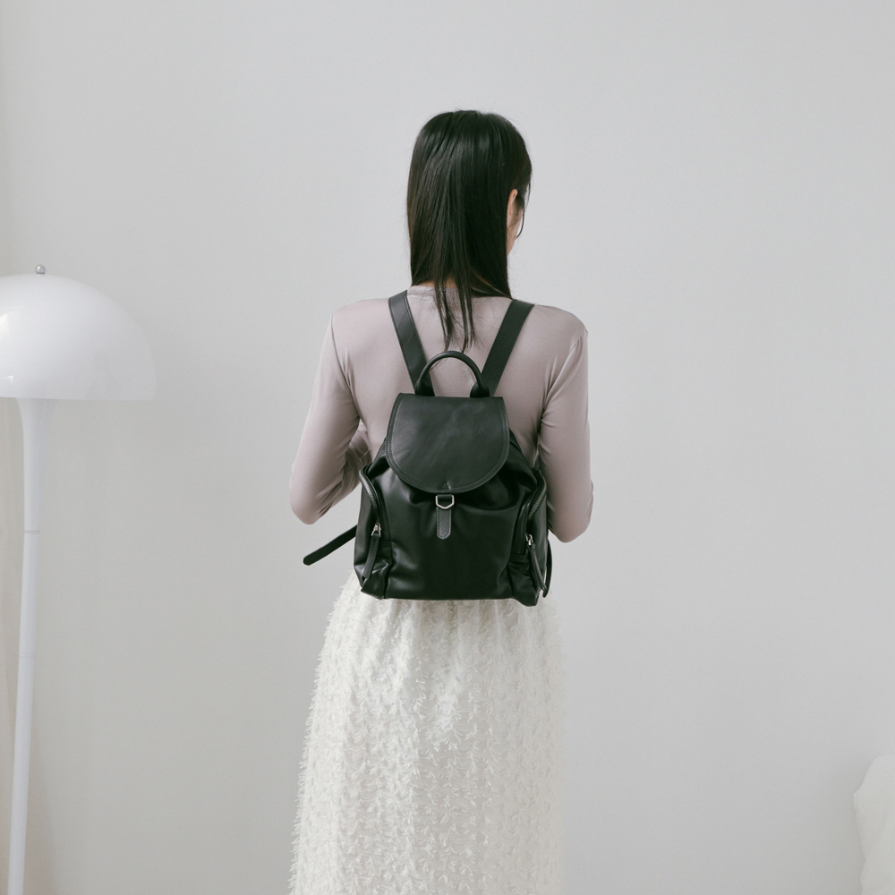 Supportingrole簡約時尚翻蓋真皮磁扣束口後背包 黑