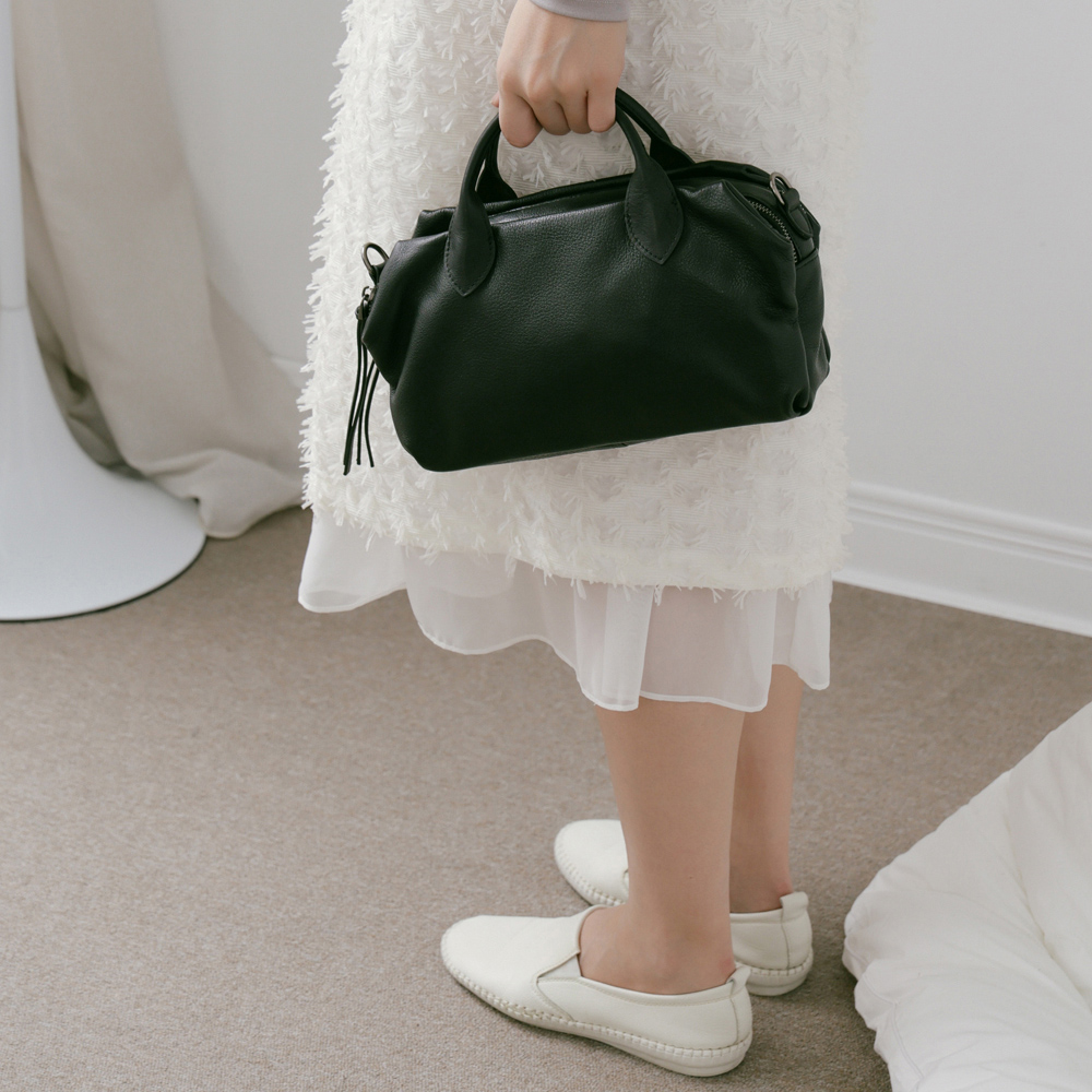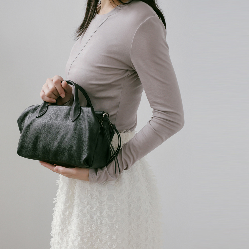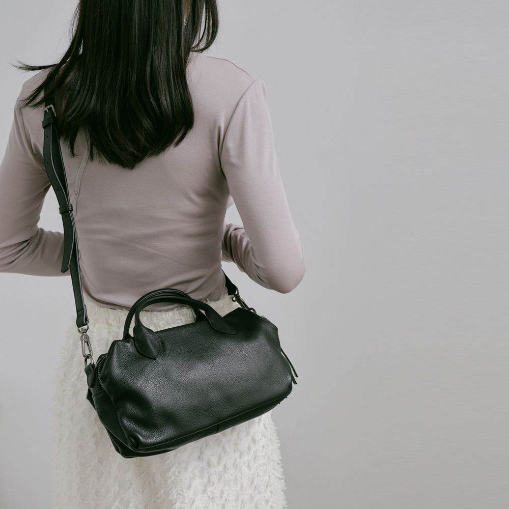 Supportingrole簡約線條百搭輕量真皮手提肩斜背旅行波士頓 黑