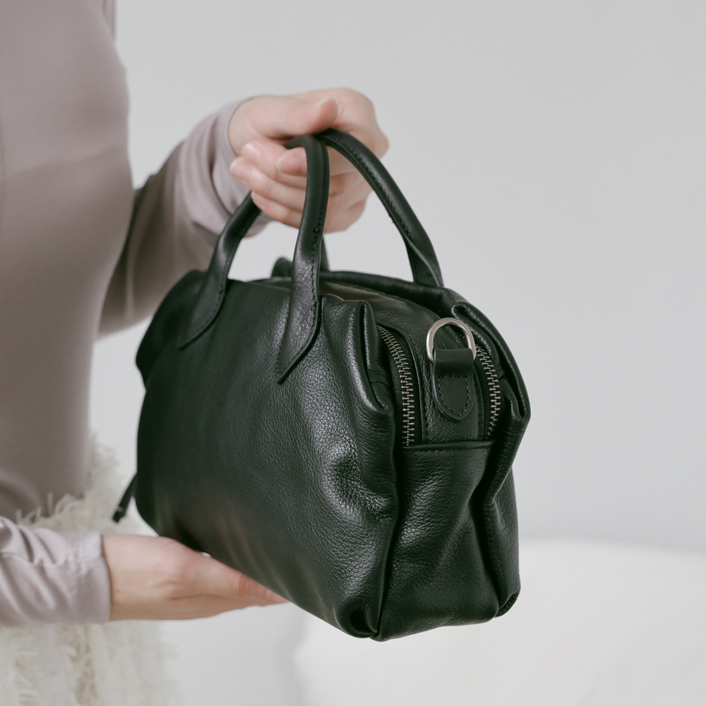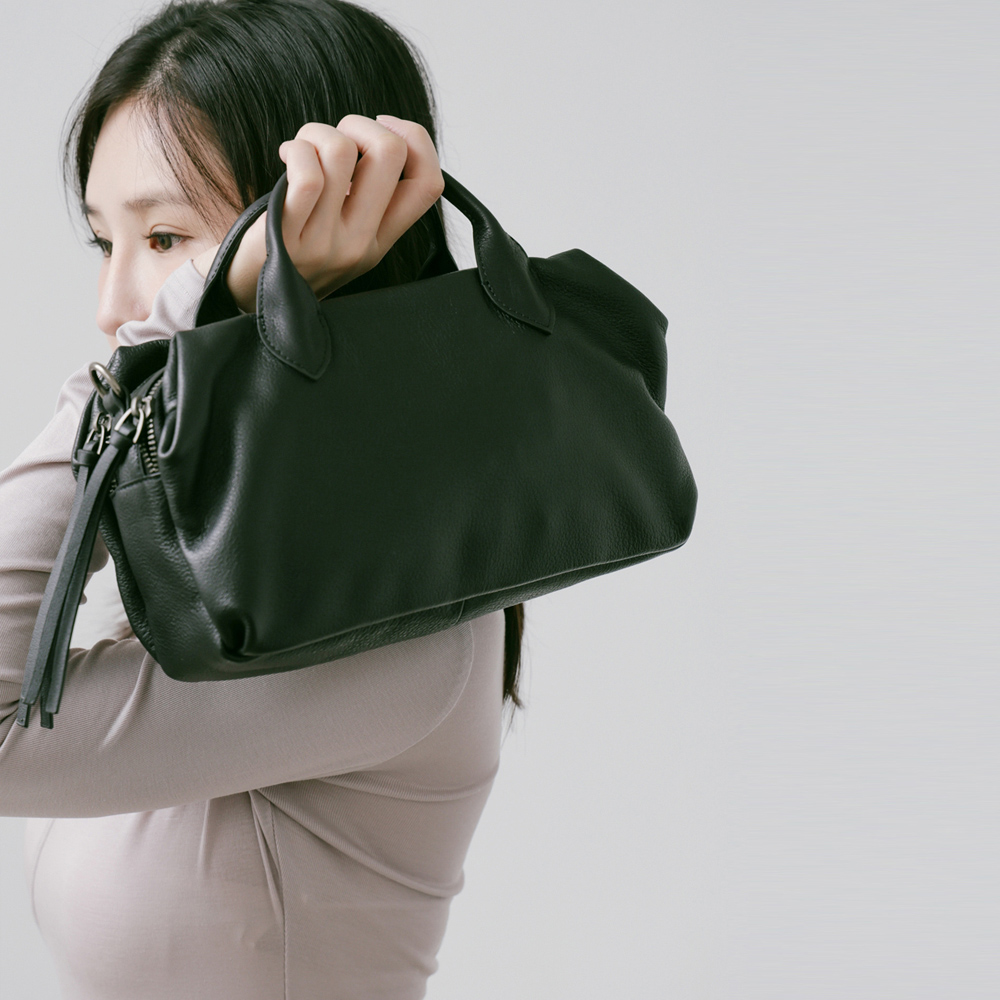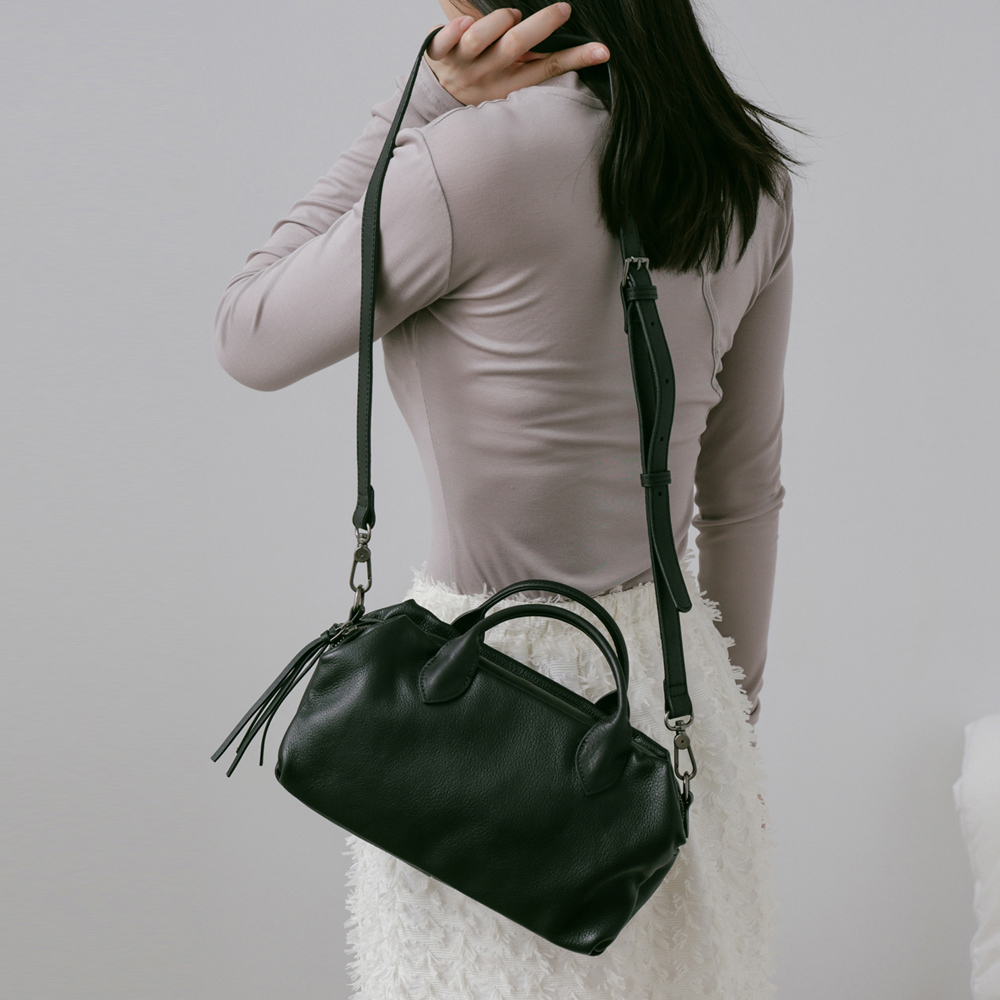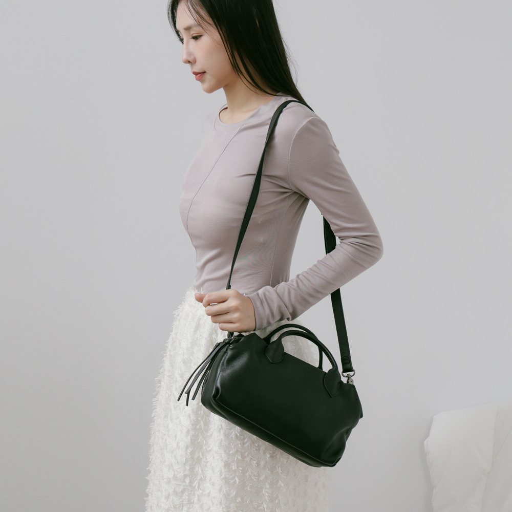Supportingrole簡約線條百搭輕量真皮手提肩斜背旅行波士頓 黑