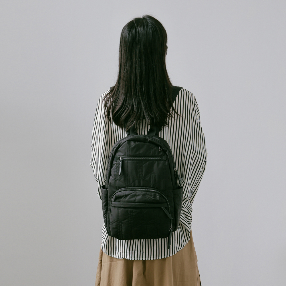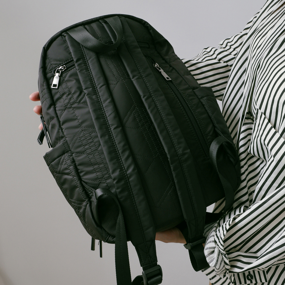 supportingrole簡約形塑俐落線條澎軟多用後背包 黑