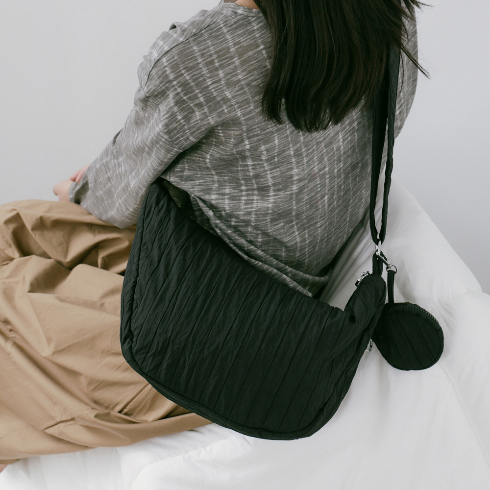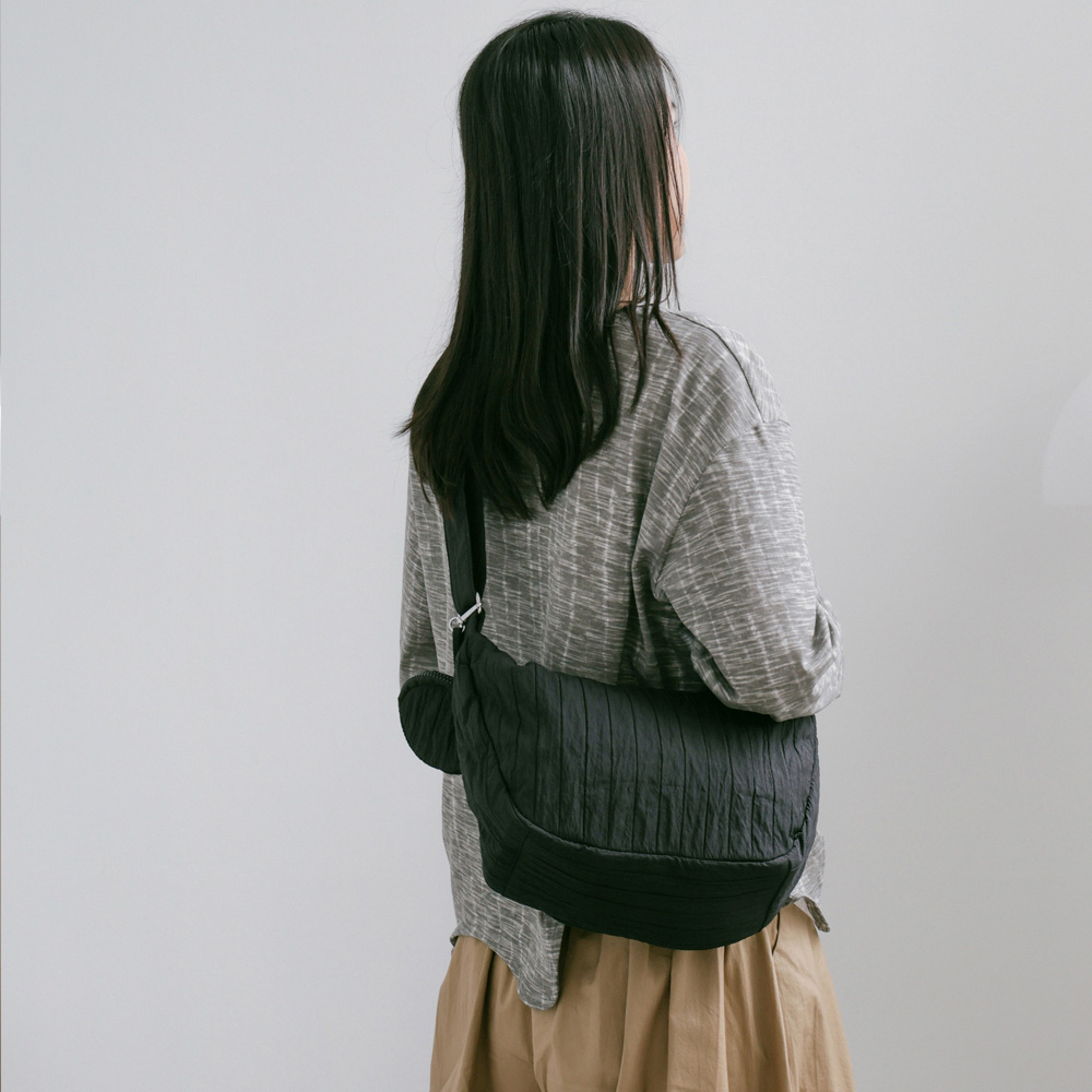 supportingrole簡約慵懶蓬鬆弧線多用斜肩背包 黑