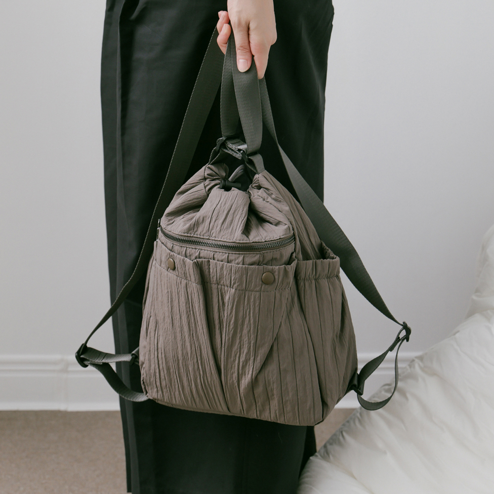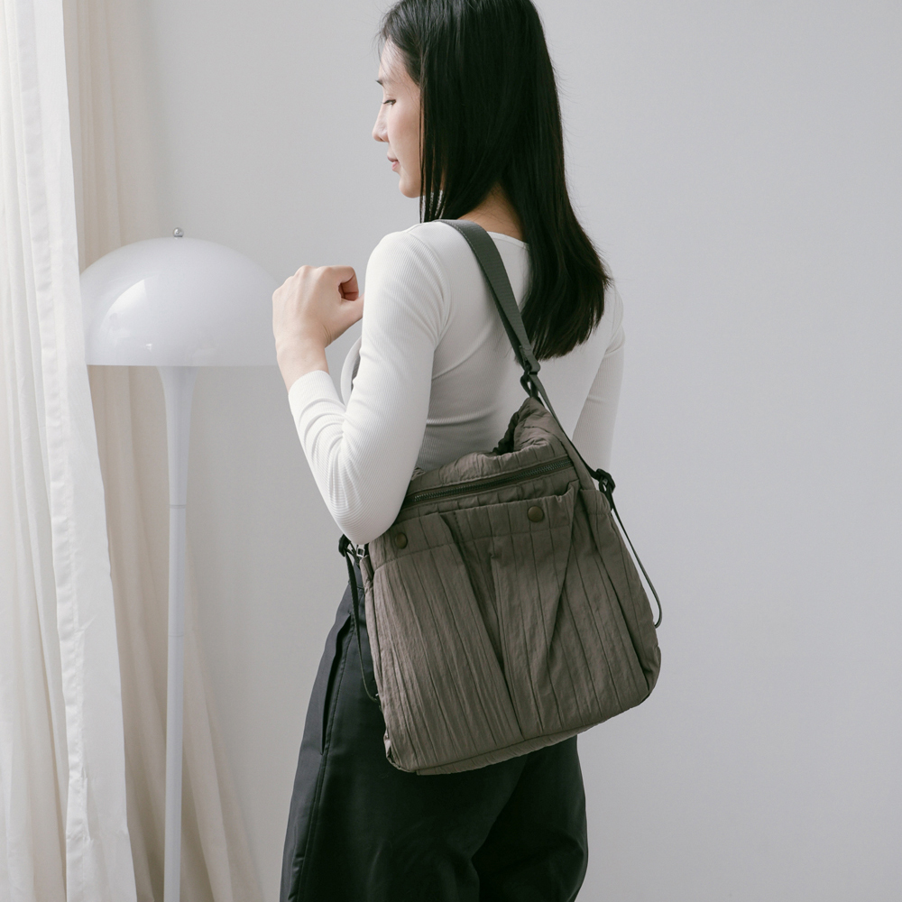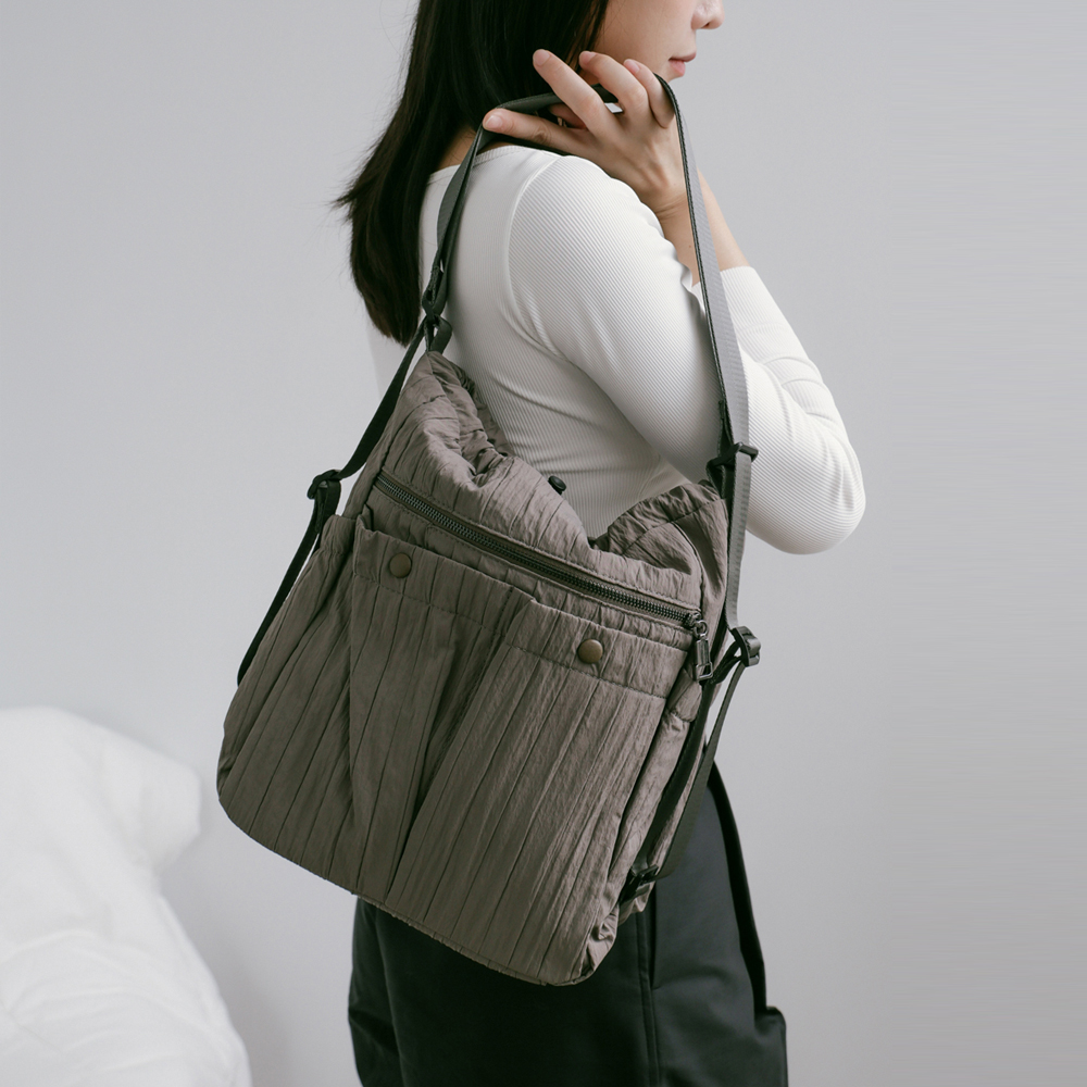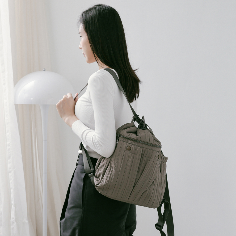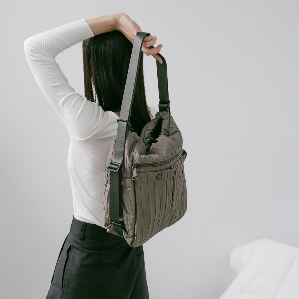 supportingrole 蓬鬆俐落線條斜肩後背手提3用包 灰