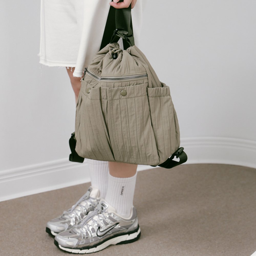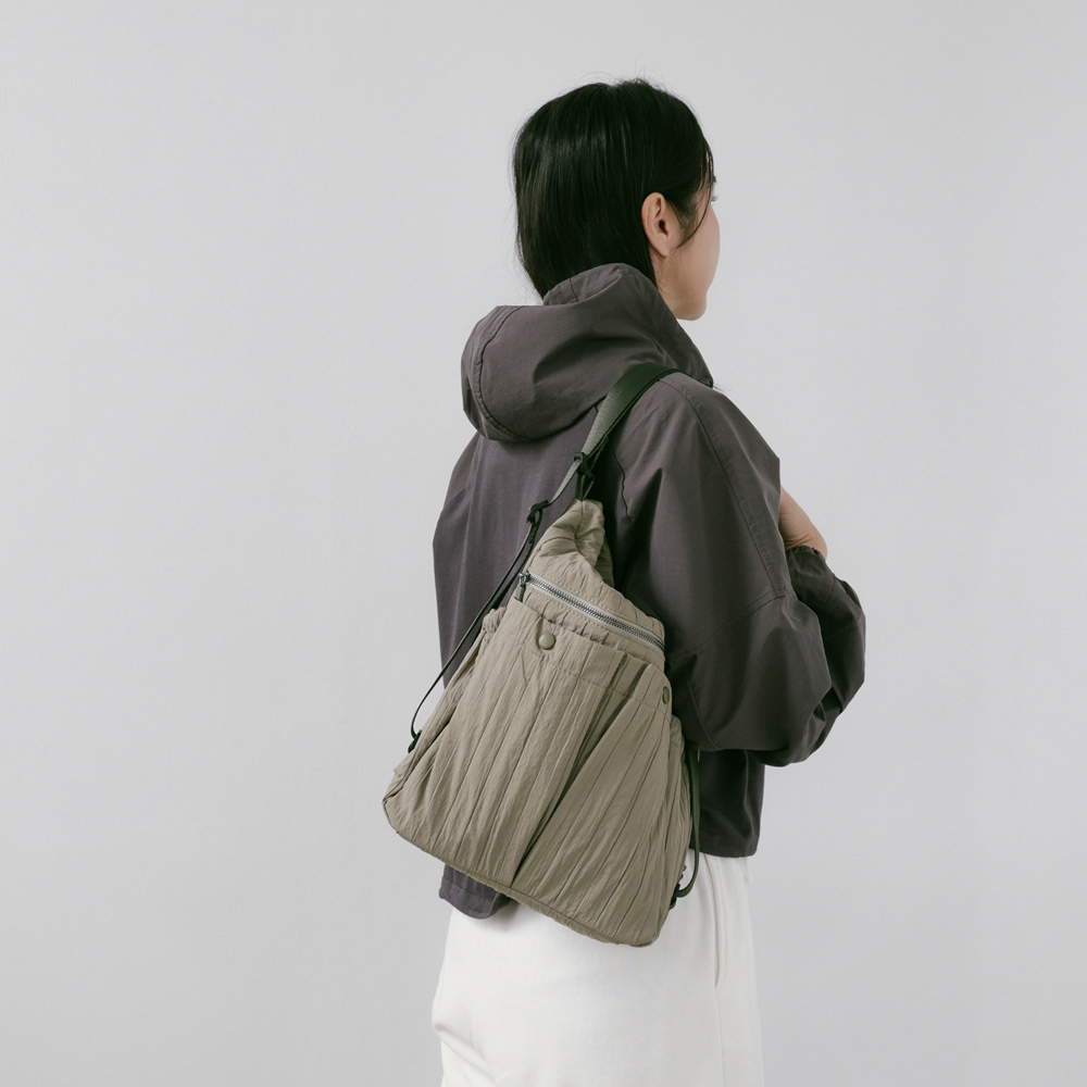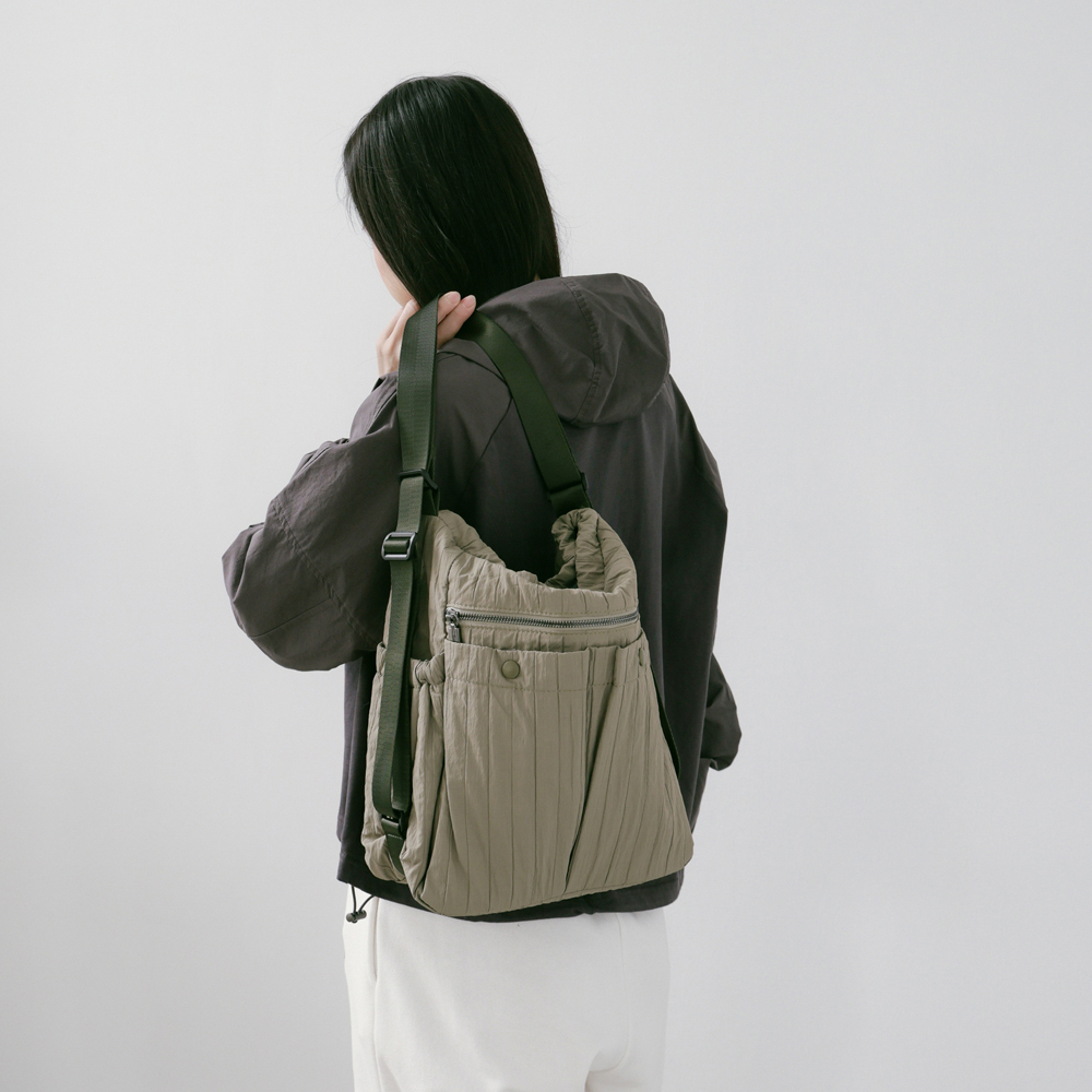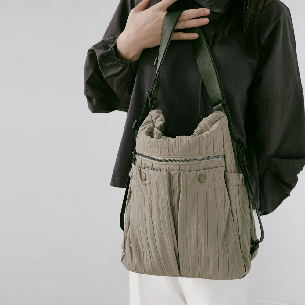 supportingrole 蓬鬆俐落線條斜肩後背手提3用包 軍綠