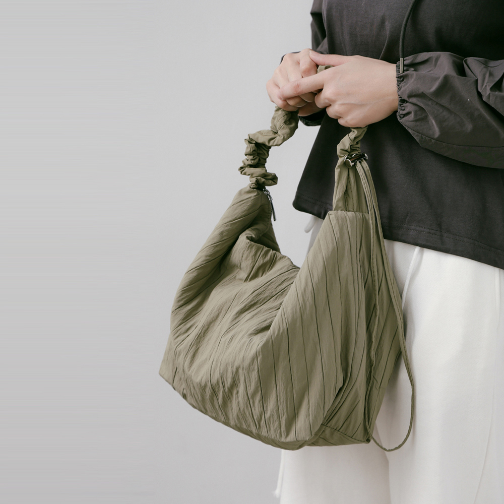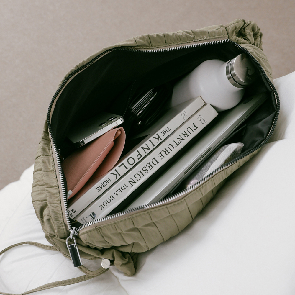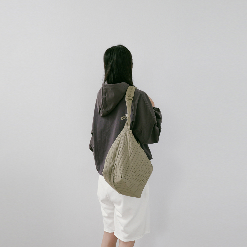 supportingrole 輕盈柔和抽繩元素多用手提斜肩背包 灰綠