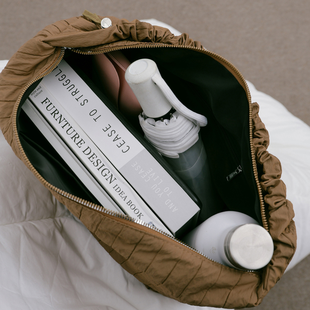supportingrole 輕盈柔和抽繩元素多用手提斜肩背包 咖啡棕
