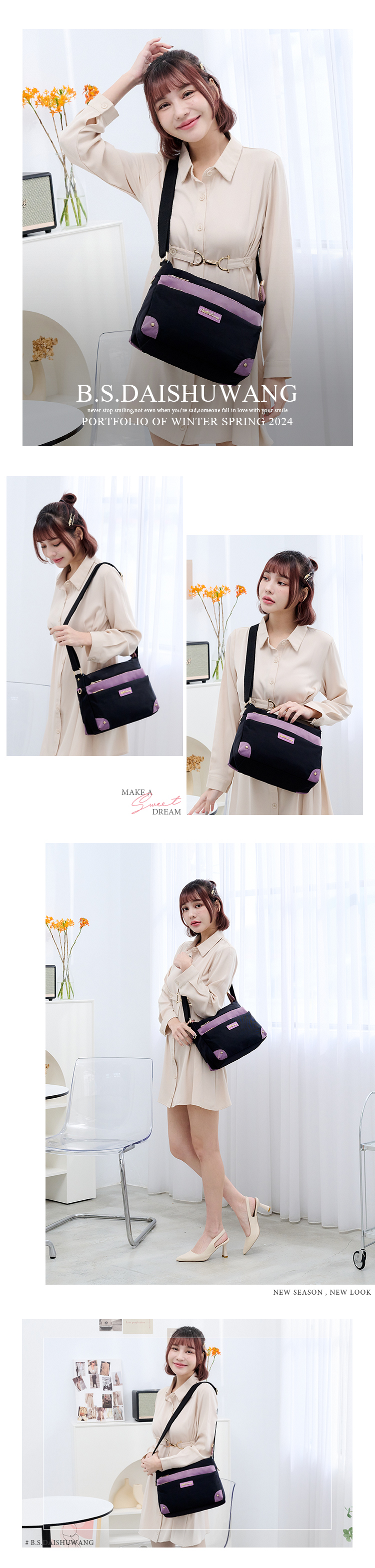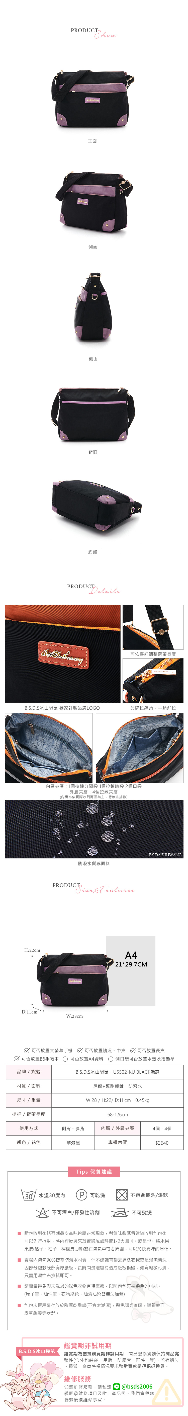 B.S.D.S冰山袋鼠 - BLACK魅惑 - 典雅拼接多層百搭斜背包 - 芋紫黑【U5502-KU】