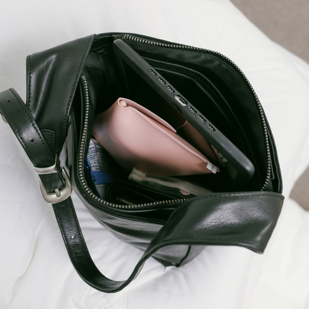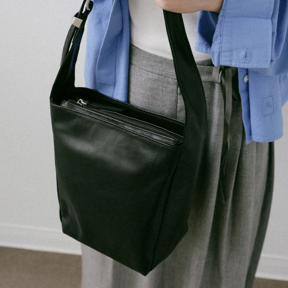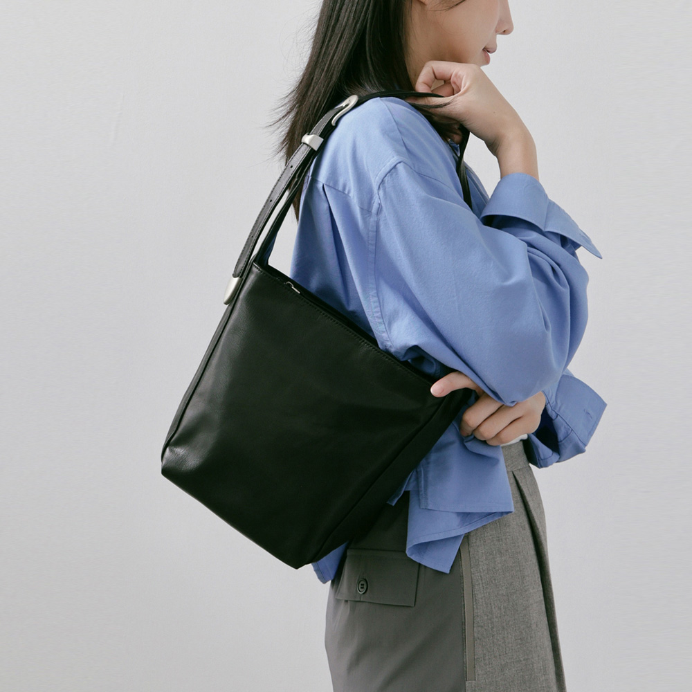 Supportingrole 簡約百搭輕量兩用真皮手提肩背腋下托特包 黑