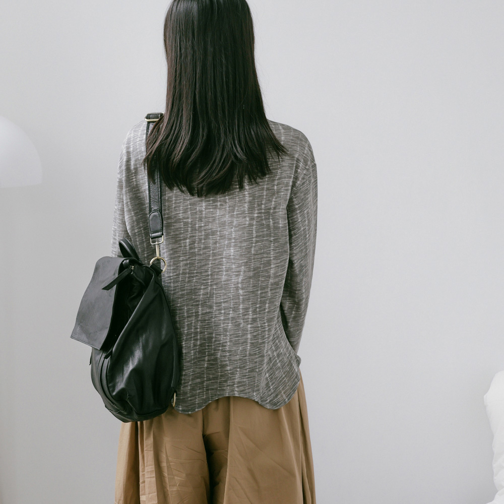 supportingrole 翻摺兩用多層口袋容量旅行百搭日常真皮肩斜後背包 黑