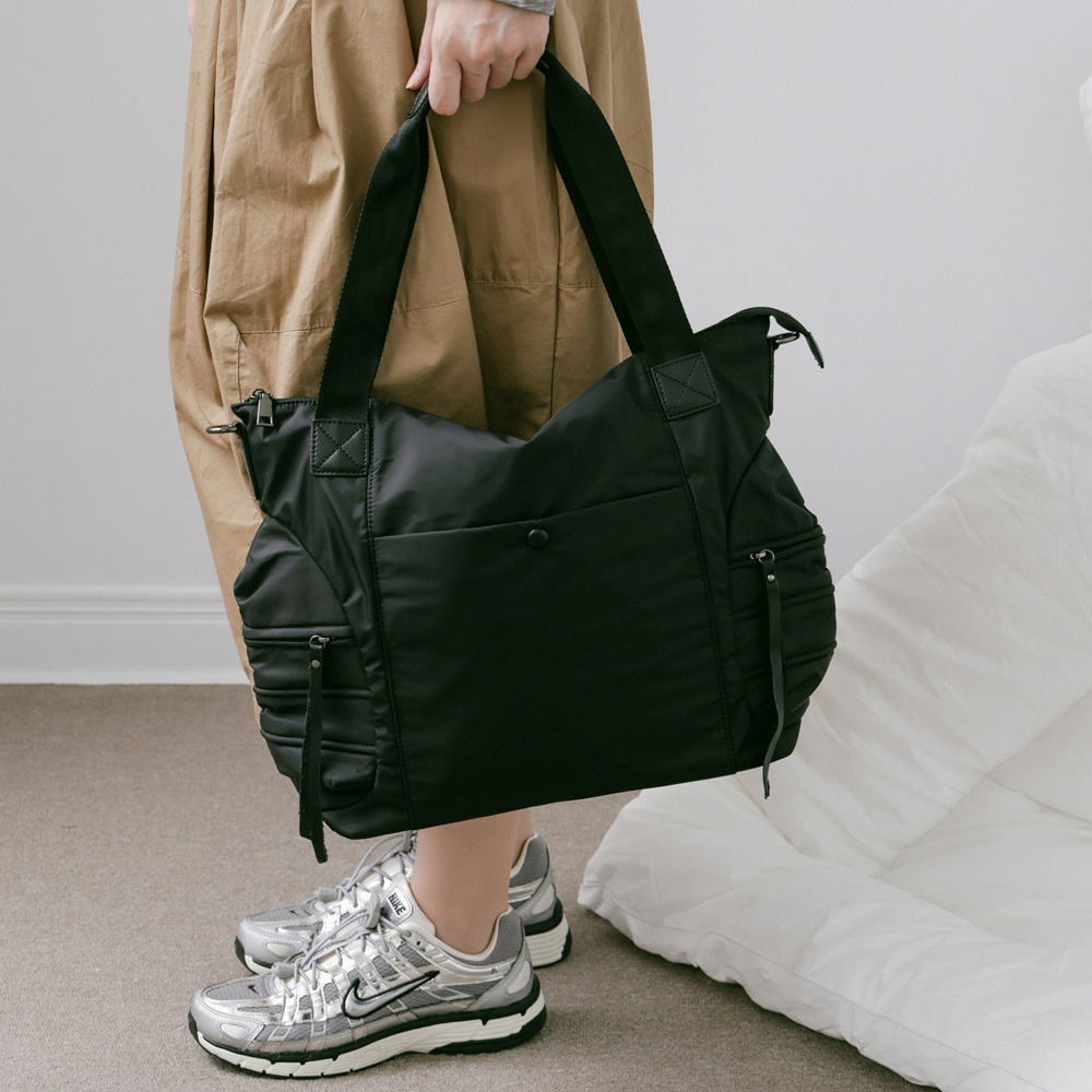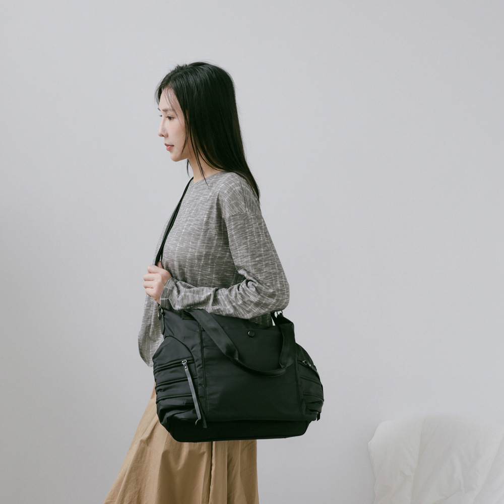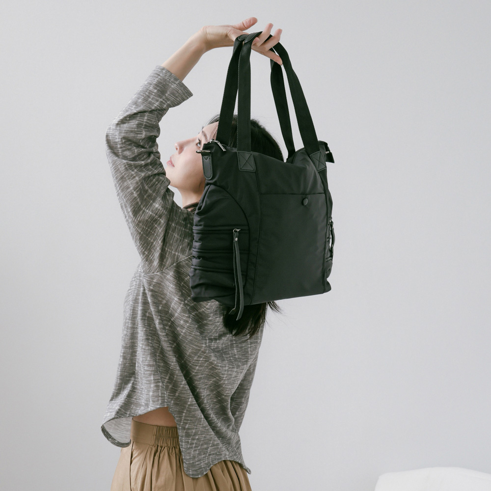 supportingrole 俐落線條結構感斜肩後背手提3用托特包 黑
