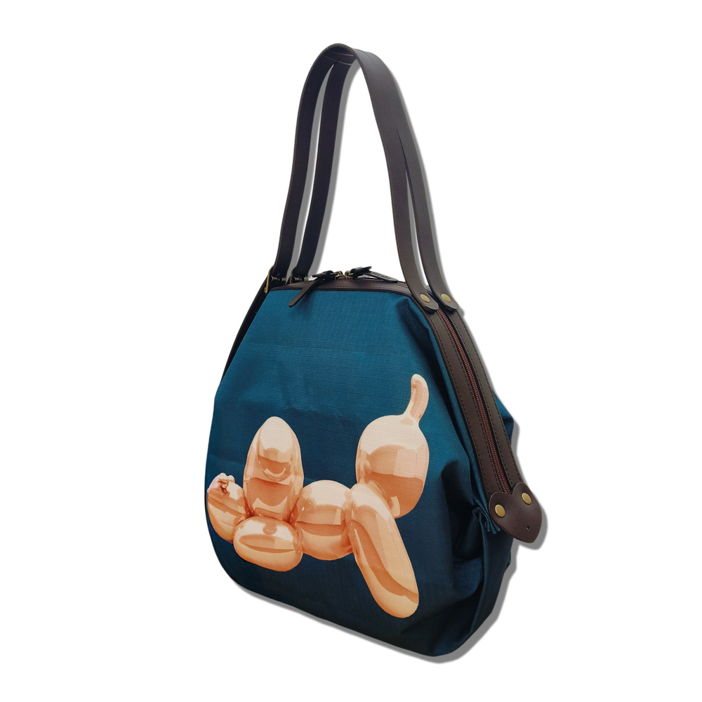 『絕版限量款』POPCORNGREEN摺疊側肩包(S)藝術家聯名款氣球狗-單寶藍+贈送(顏色隨機):POPCORNGREEN藝術聯名氣球狗擺飾(S)